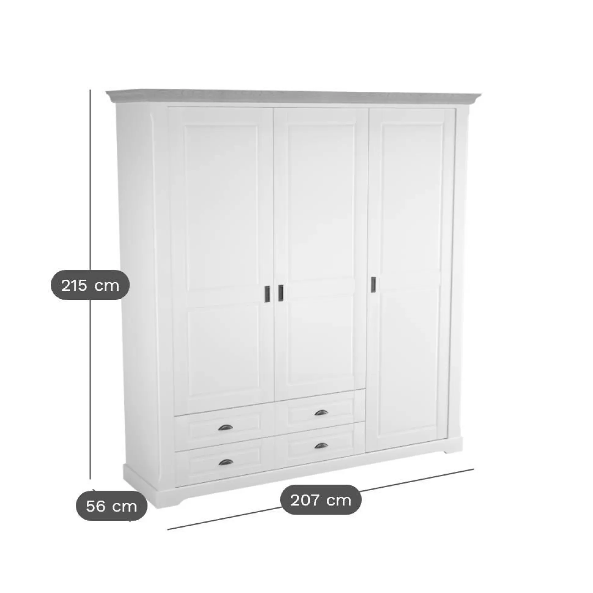 Dotée de trois portes et de deux tiroirs intégrés, cette armoire allie parfaitement esthétique et praticité. Derrière ses lignes épurées et ses finitions en placage chêne, elle offre un espace de rangement généreux et polyvalent. Les compartiments intérieurs comprennent des étagères ajustables et une tringle robuste, parfaits pour organiser vos vêtements, tandis que les deux tiroirs situés en partie basse accueillent vos accessoires, linge de maison ou objets du quotidien.