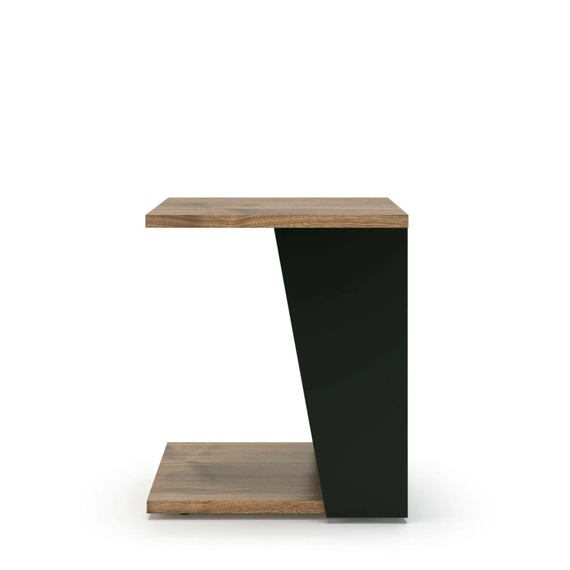 Le bout de canapé Albi est une petite table d’appoint astucieuse et élégante. Il présente un double plateau et un bac sur le côté, idéal pour ranger des livres ou des magazines.