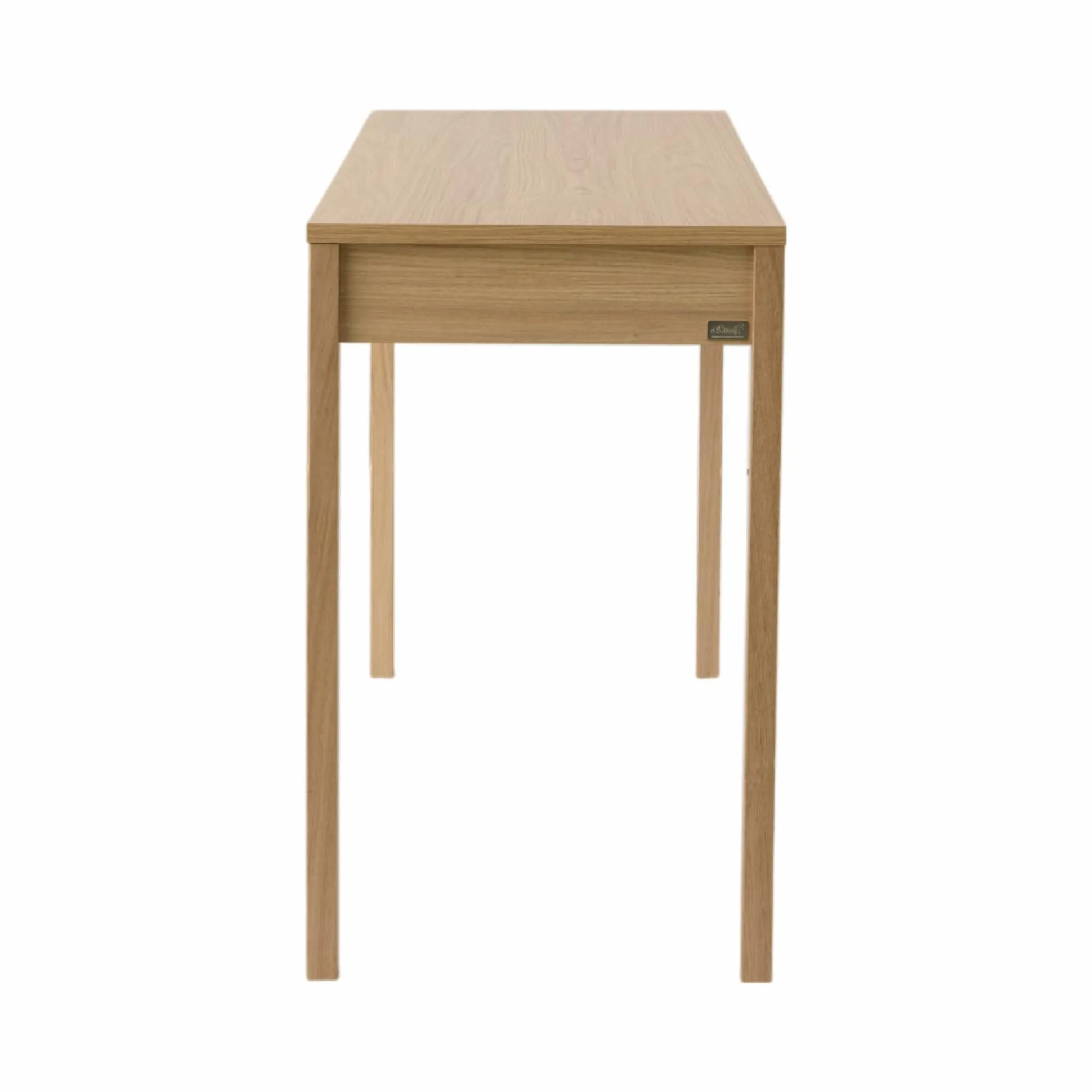 Ce bureau arbore une finition effet chêne doré, avec des reliefs de panneaux synchronisés au veinage du bois, offrant une illusion presque parfaite de chêne véritable. Son revêtement en mélaminé combine ainsi l’esthétique du bois avec une grande facilité d’entretien.