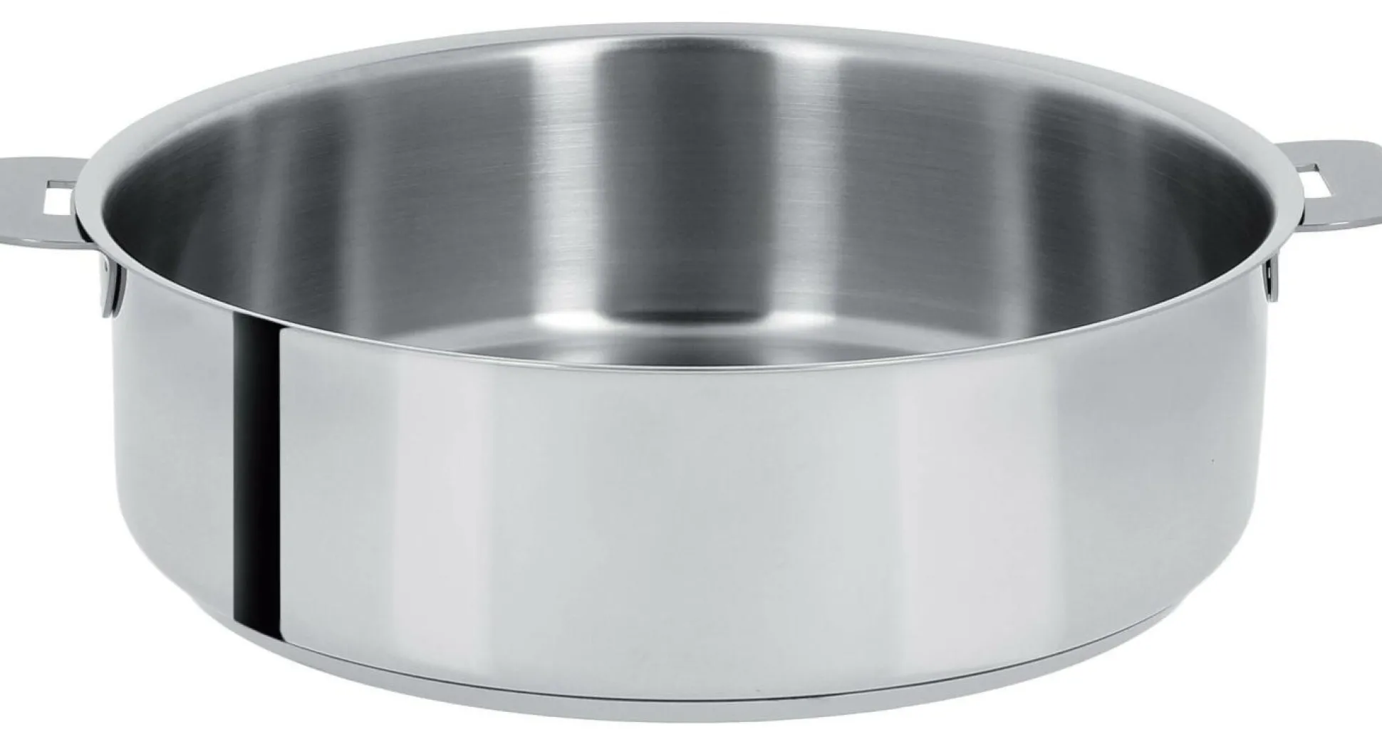 Emblème du concept « Cuisson-Service », la sauteuse inox passe de la cuisine à la table et se transforme en plat de service en se parant de 2 anses (disponibles en option).