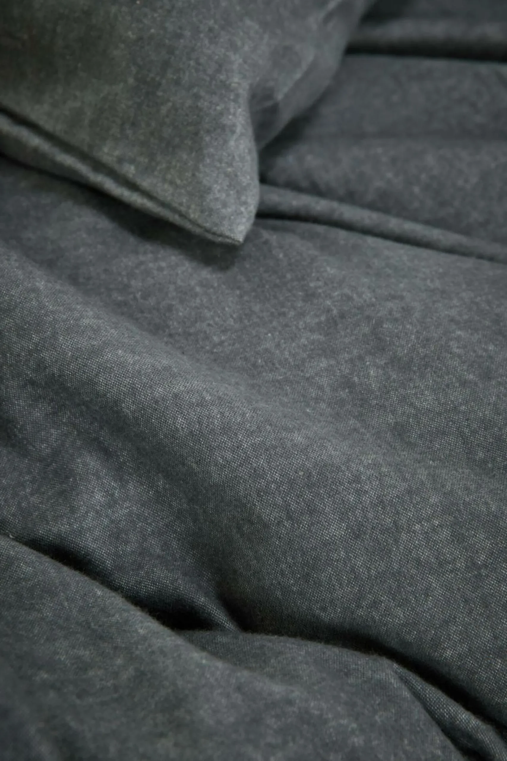 Confectionnée en flanelle de coton chambray, cette matière est un tissu doux avec un bel aspect molletonné.