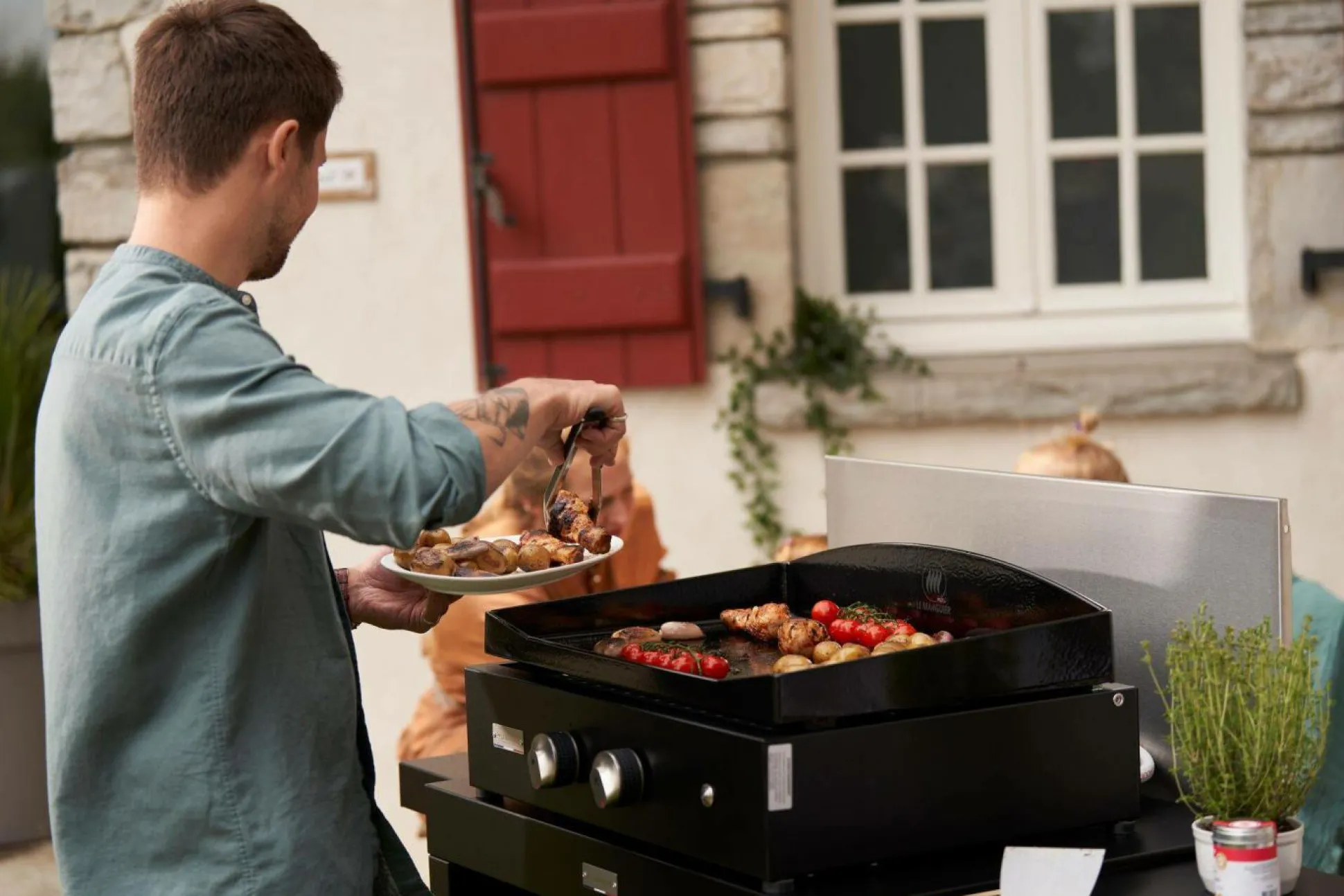 Profitez du confort de la Plancha Gaz Pure 260 en Acier de LE MARQUIER pour des moments conviviaux de cuisine au jardin.