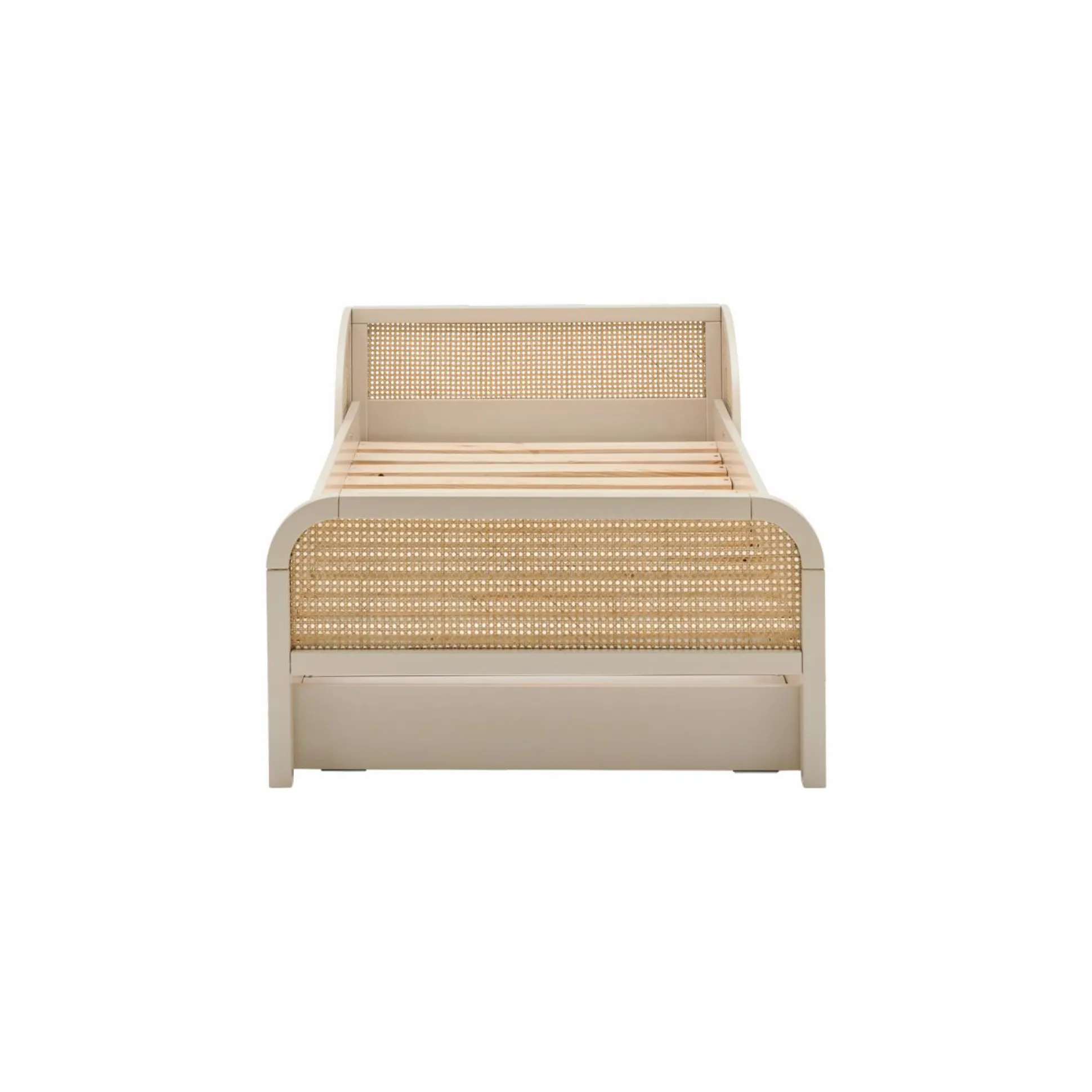 Le lit Sam incarne l’élégance naturelle grâce à son alliance harmonieuse de bois clair et de cannage tressé. Son design épuré et ses lignes douces s’adaptent à tous les styles d’intérieur, qu’ils soient modernes, bohèmes ou classiques.