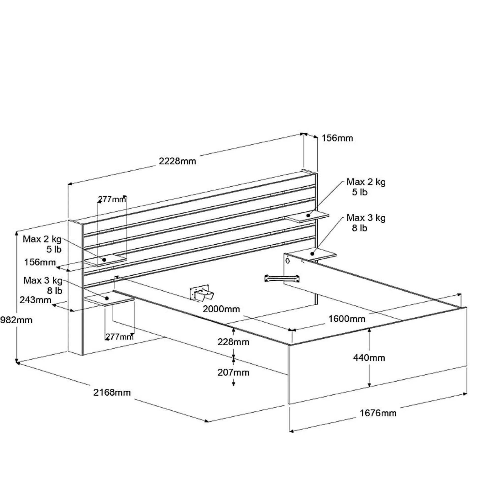 Ses tablettes s’utilisent parfaitement en table de nuit pour poser vos objets du quotidien ou quelques éléments de déco, tout comme la plateforme supérieure.