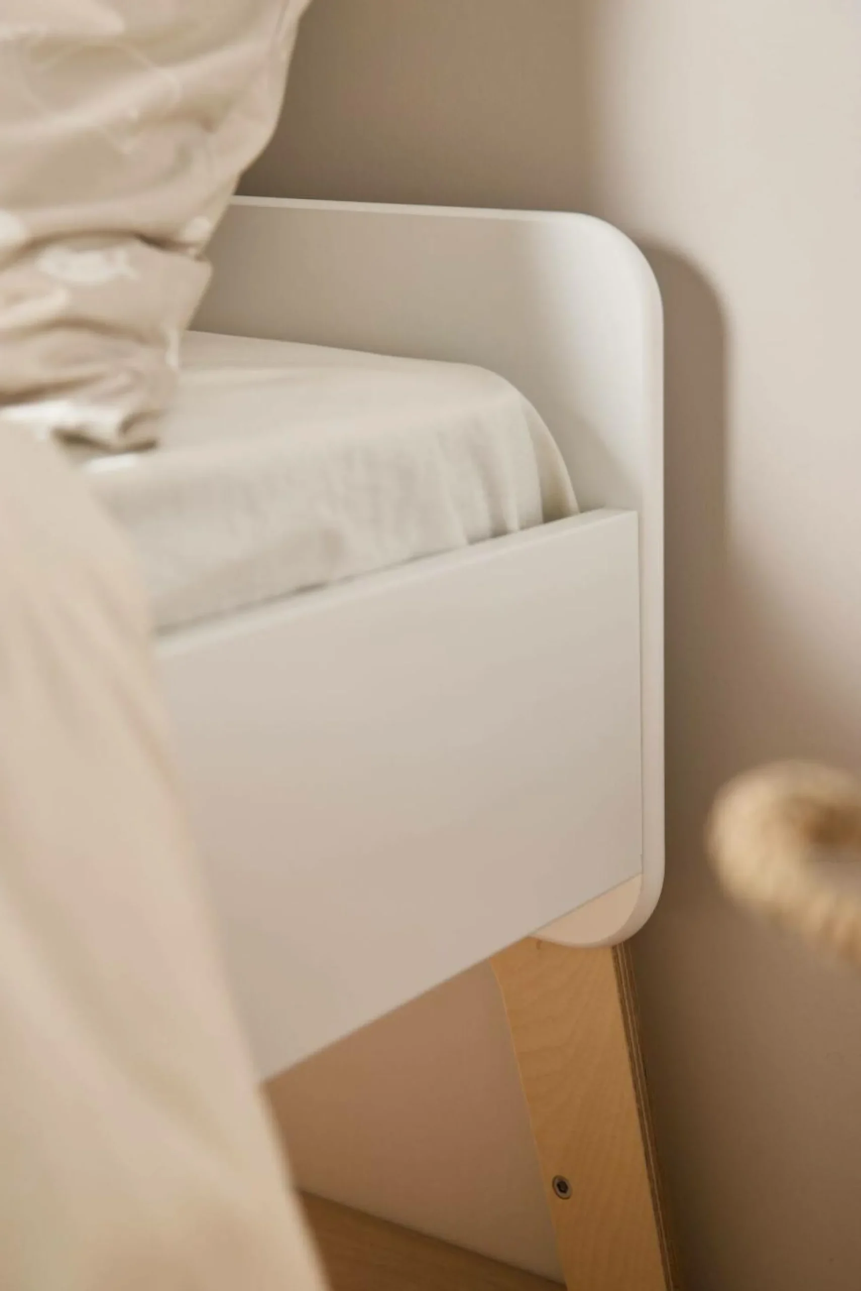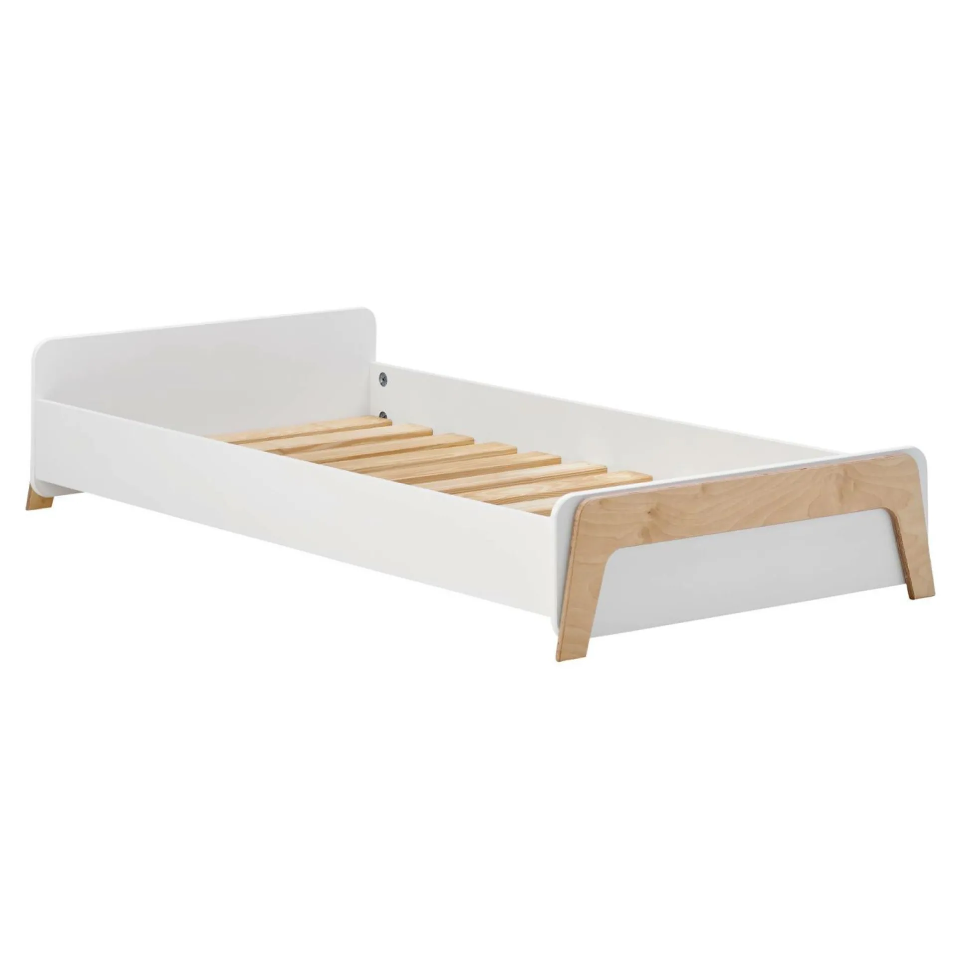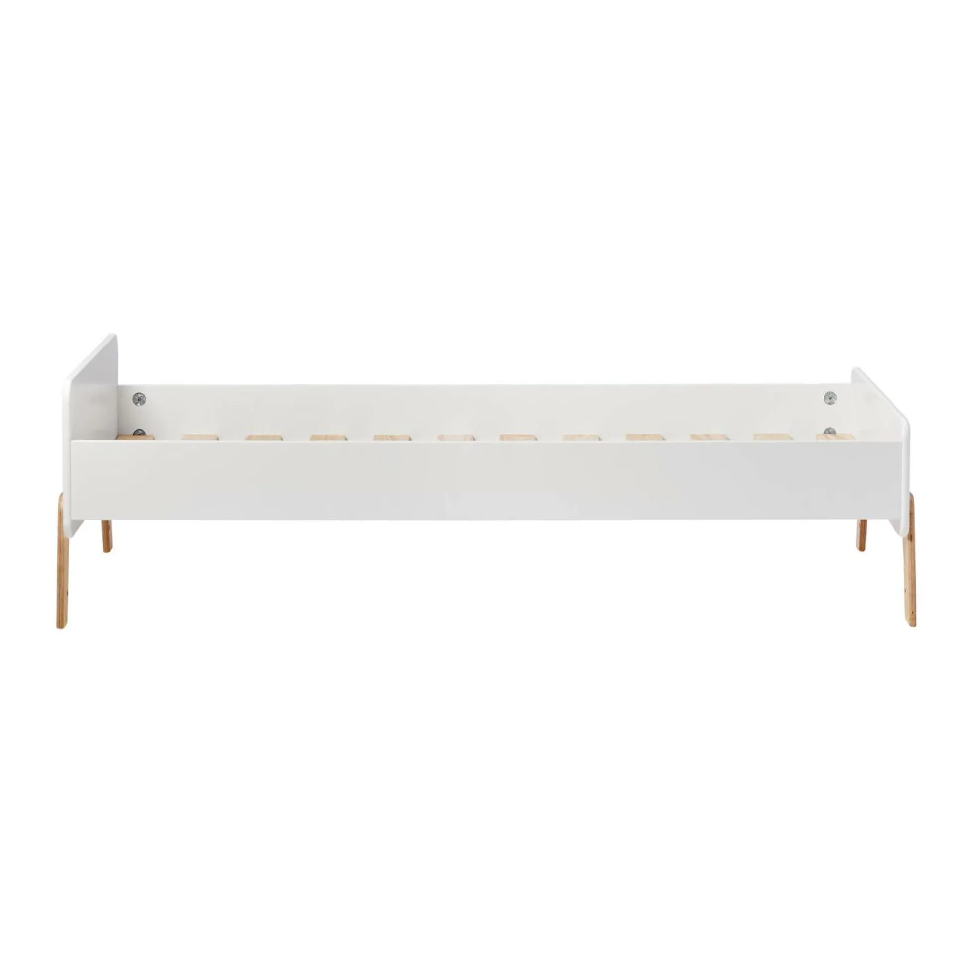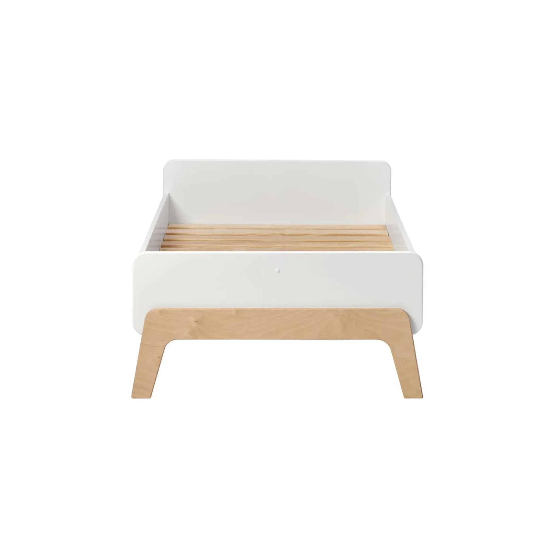 Avec ses finitions mêlant blanc et bois clair, ce lit évolutif s’intègre harmonieusement dans toutes les chambres d’enfants. Ses lignes épurées et ses pieds soigneusement dessinés en font un meuble à la fois fonctionnel et esthétique, apportant une touche de douceur à l’espace.