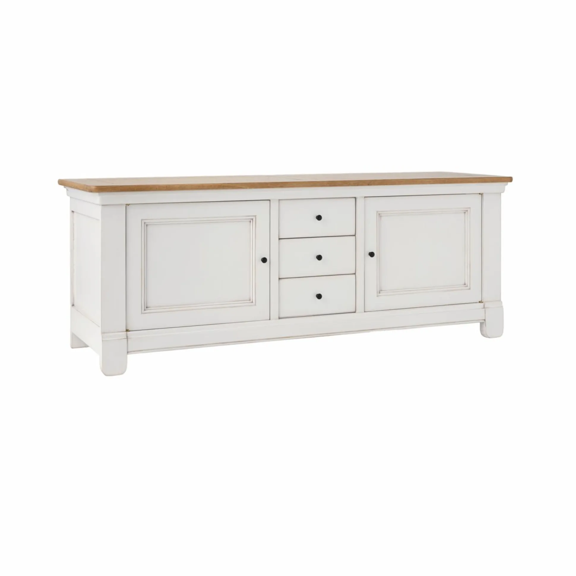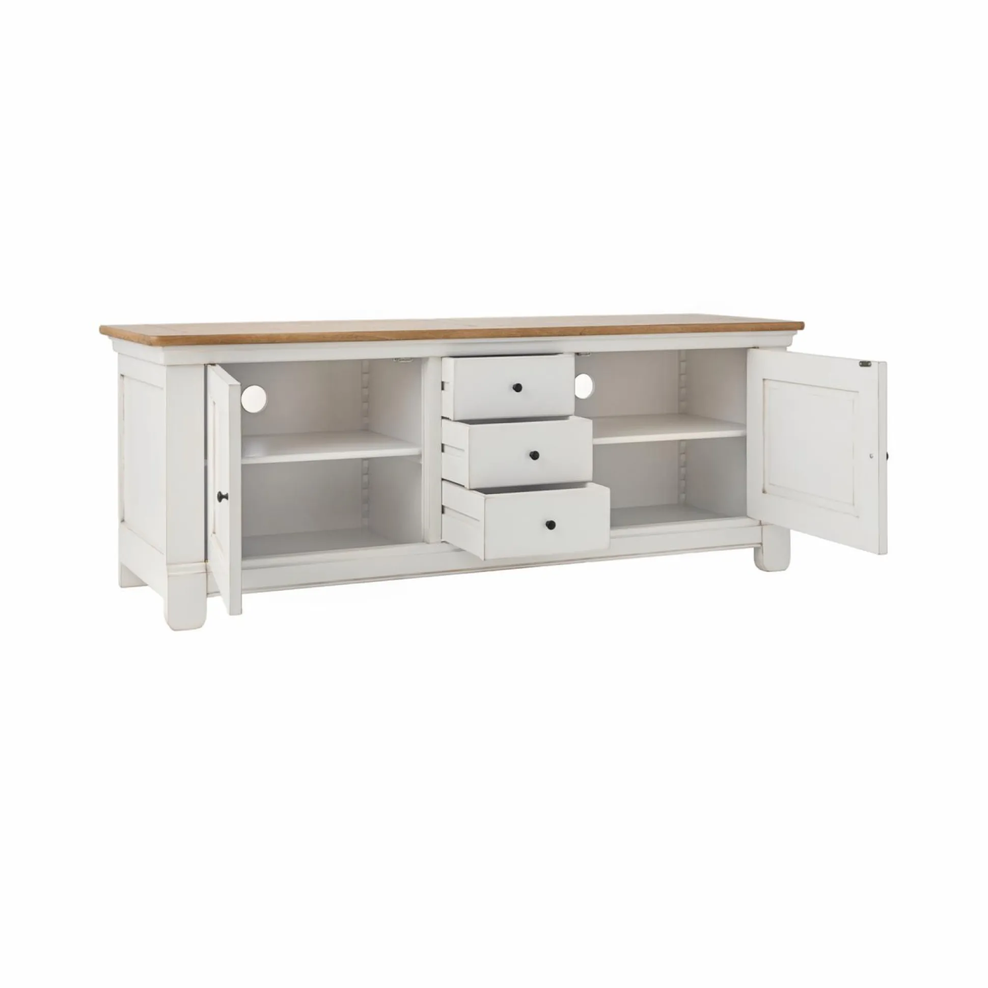 Et si votre télévision s’installait dans un écrin de charme ? Le meuble TV en bois massif Embellie, inspiré des meubles de famille, apporte à votre salon une atmosphère chaleureuse et intemporelle.