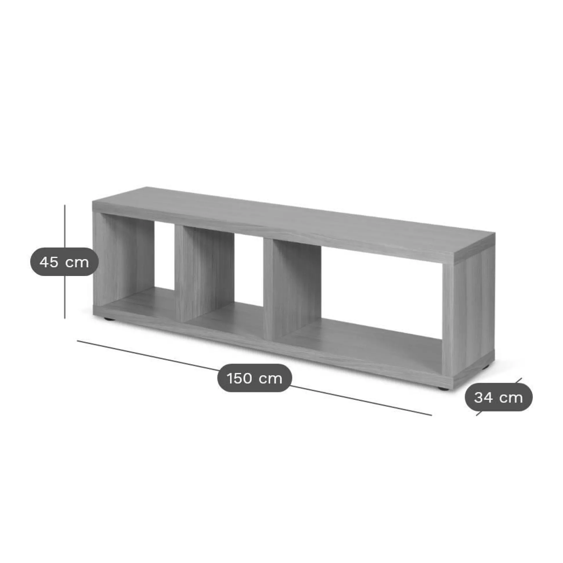 Pensé pour s’adapter à vos besoins, ce meuble TV peut être complété par un ou deux cubes de rangement en option, permettant d’optimiser l’espace et de dissimuler vos objets du quotidien.