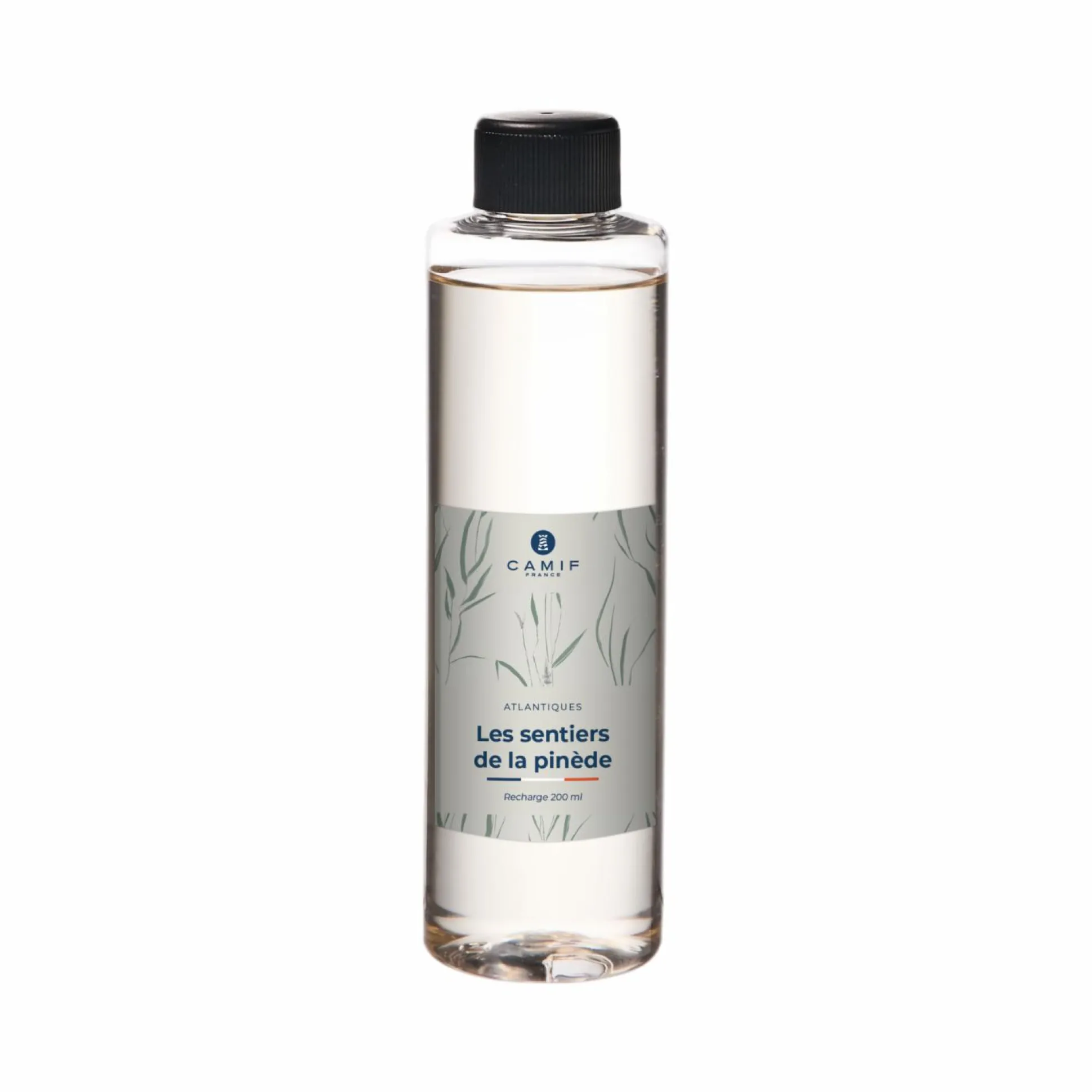 La Recharge Bouquet de senteur Les Sentiers de la Pinède vous permet de prolonger l’expérience olfactive de l’Atlantique avec son parfum frais et boisé, où se mêlent subtilement la résine de pin, la fraîcheur de l’eucalyptus et la chaleur de la muscade. Une fragrance qui rappelle une promenade apaisante entre sable et pins, où l’air pur et tonique vous revitalise.