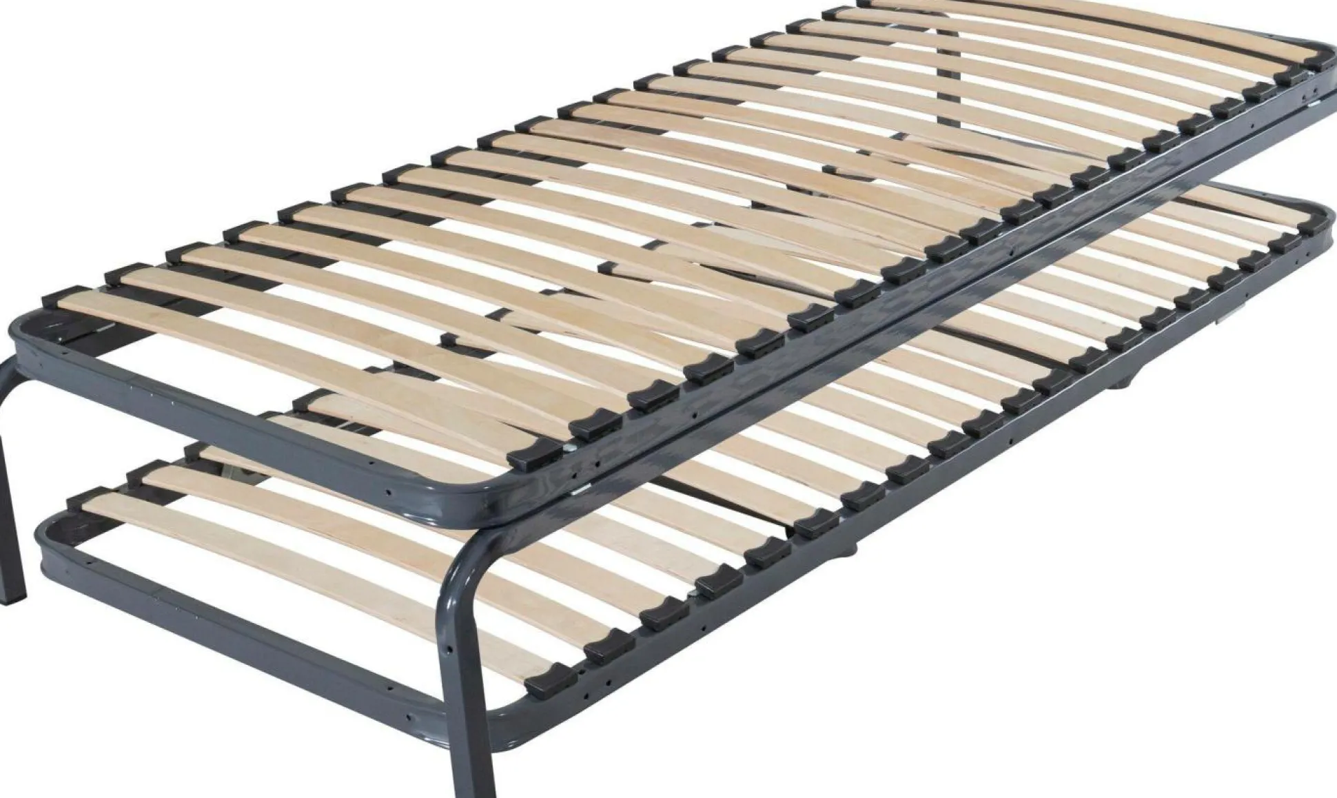 Très pratique, ce lit gigogne métallique à lattes multiplis est un véritable gain de place ! Une fois déplié, vous obtenez 2 lits juxtaposables à la même hauteur.