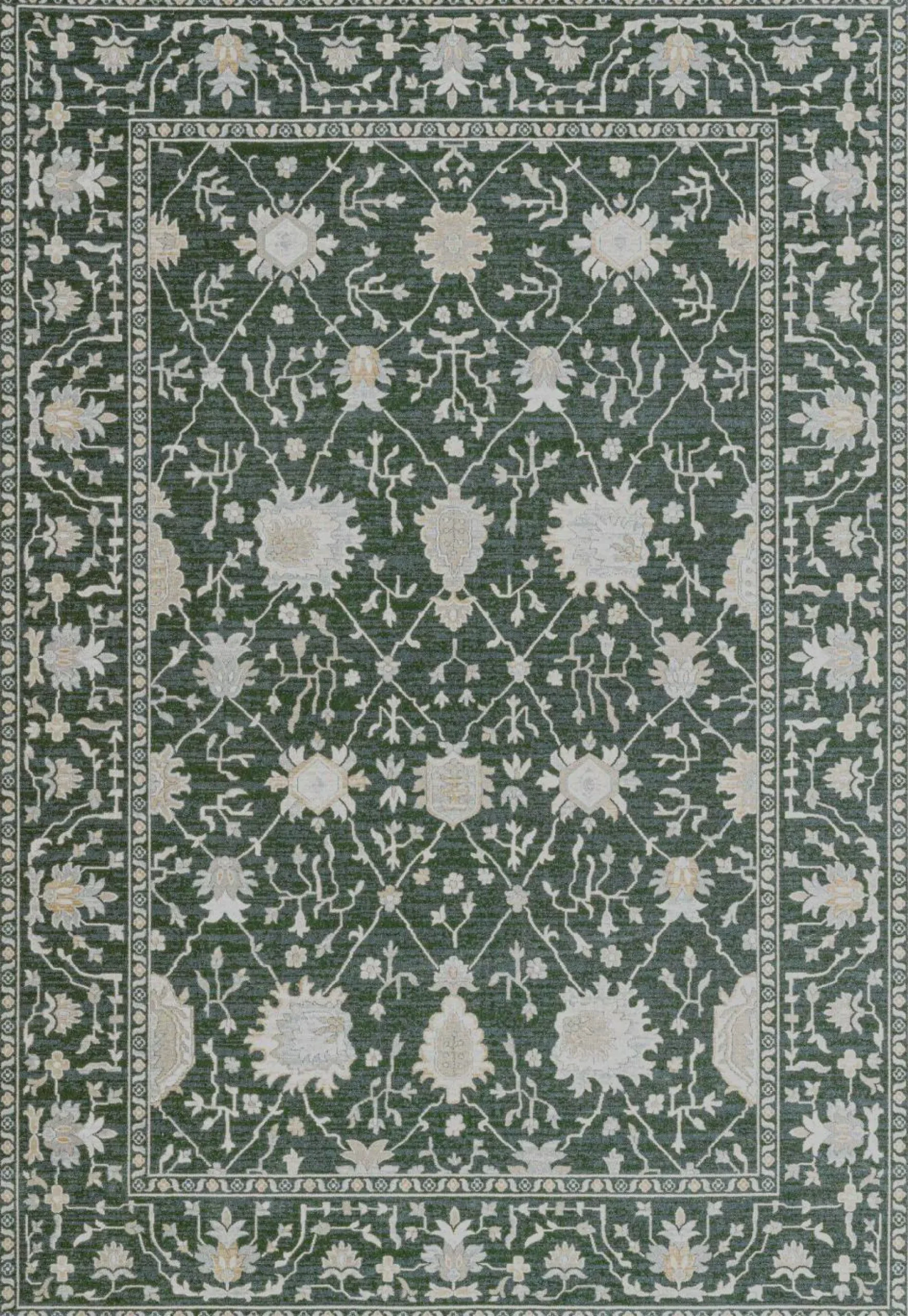 Avec ses arabesques élégantes et ses ornements floraux finement travaillés, ce tapis est une véritable pièce maîtresse. Confectionné dans des fibres recyclées et douces, et facile d’entretien, il est pensé pour embellir vos espaces de vie au quotidien.