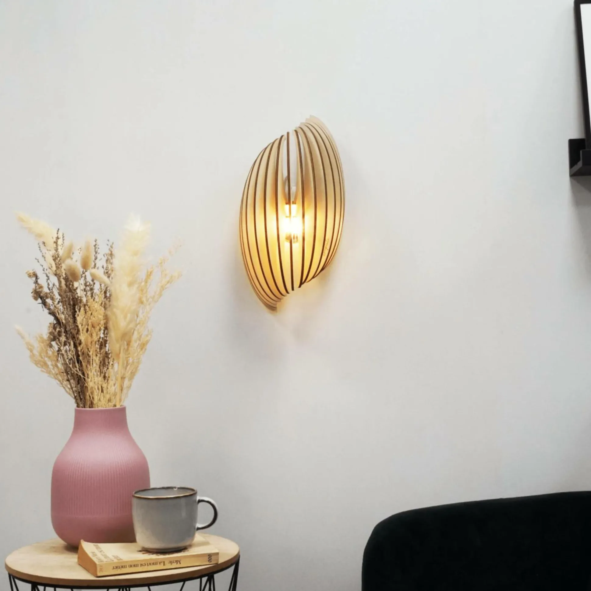 Sa forme en coquillage apporte une touche esthétique à votre intérieur. Ses lamelles de bois naturel de peupliers contreplaqué offre un très beau jeu de lumière sur vos murs.