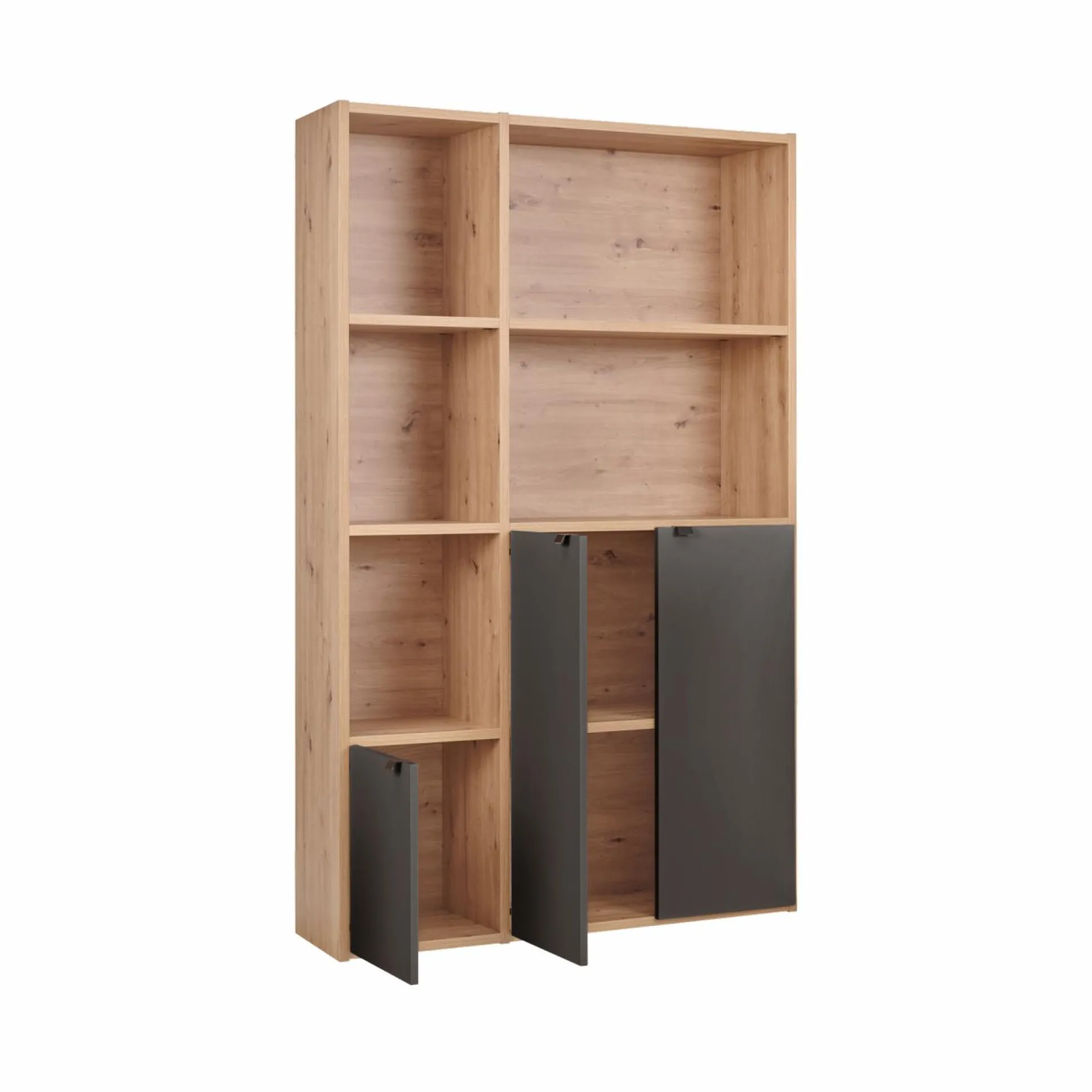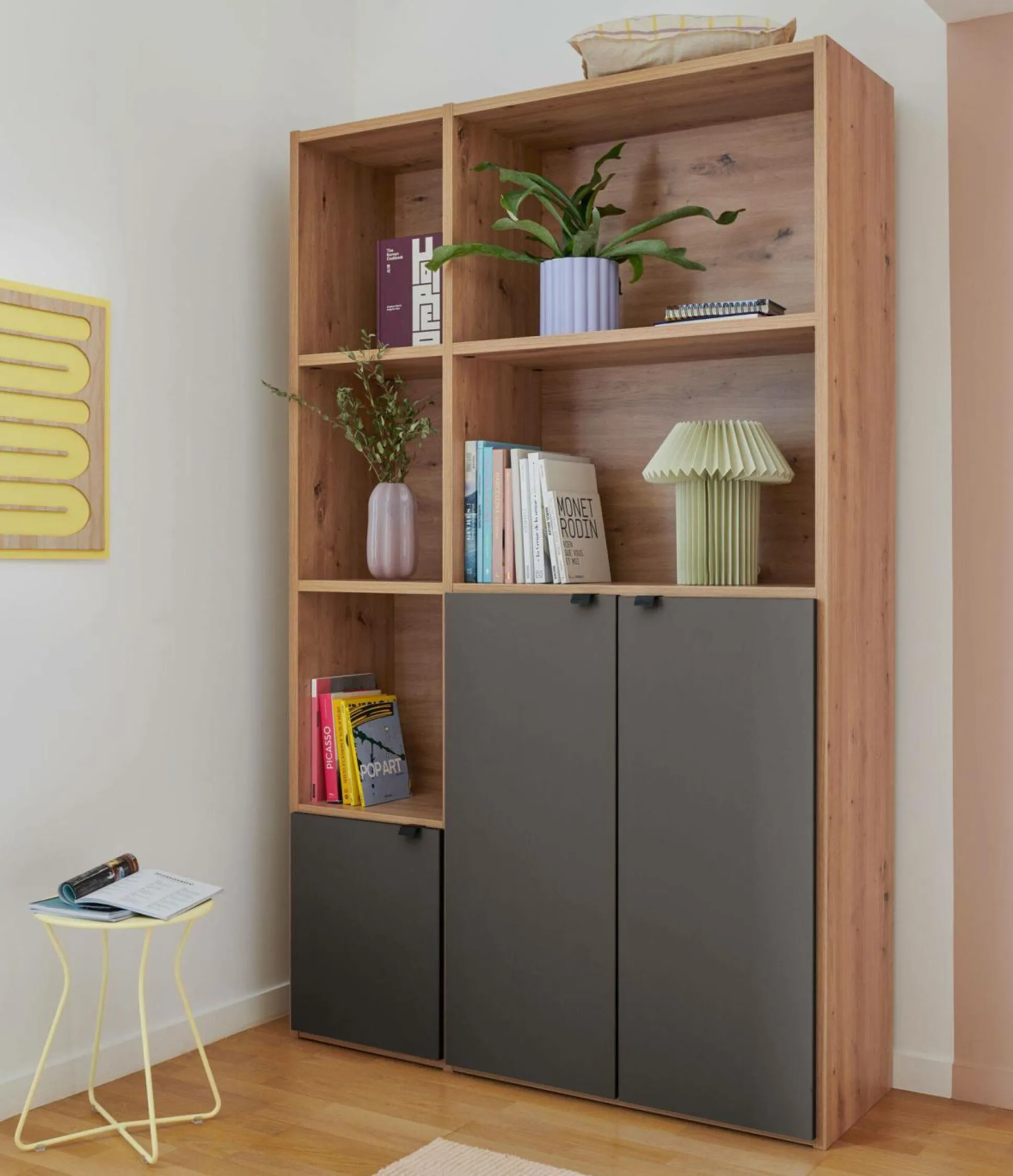 Son design sobre et naturel, souligné par une finition décor chêne sauvage, s’intègre facilement dans tous les styles d’intérieur. Pratiques et modulables, les portes peuvent être placées en bas, au milieu ou en haut de la bibliothèque selon vos envies. Vous pouvez choisir le coloris perle ou carbone pour ajouter une touche déco personnalisée.