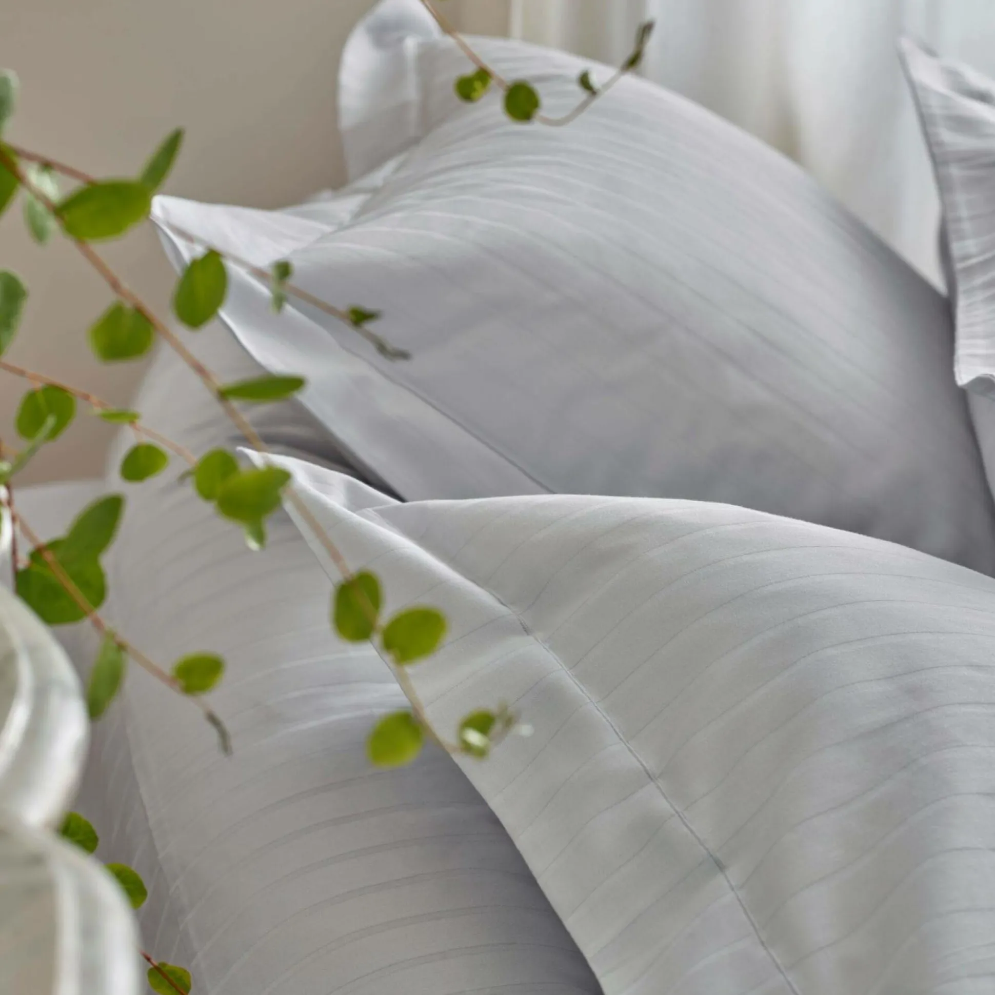 Cette parure de lit s’habille de rayures en tissage jacquard aux beaux reflets changeants et chatoyants.