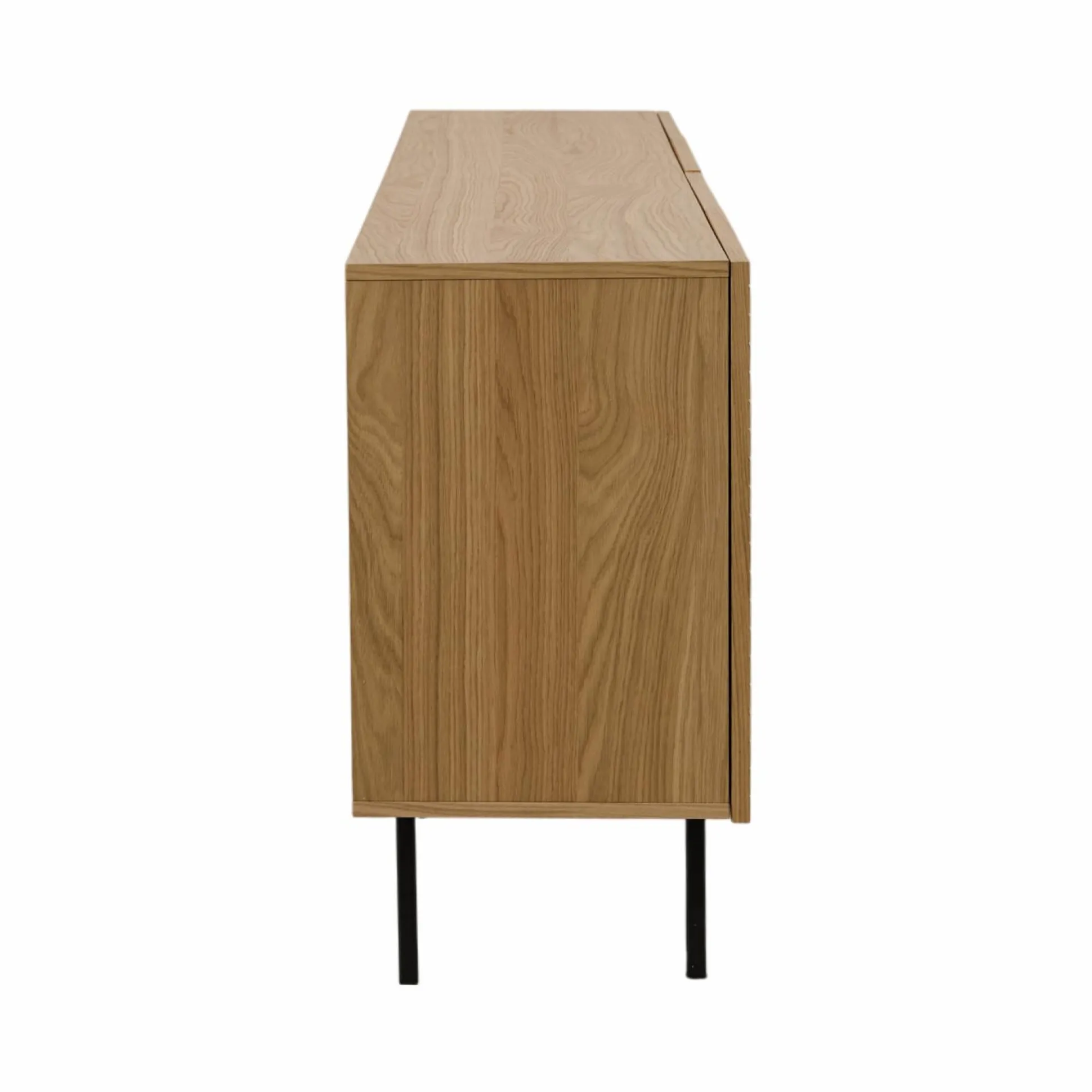 Le buffet en placage chêne Alex allie parfaitement chaleur du bois et sophistication contemporaine, idéal pour structurer et habiller votre espace de vie.