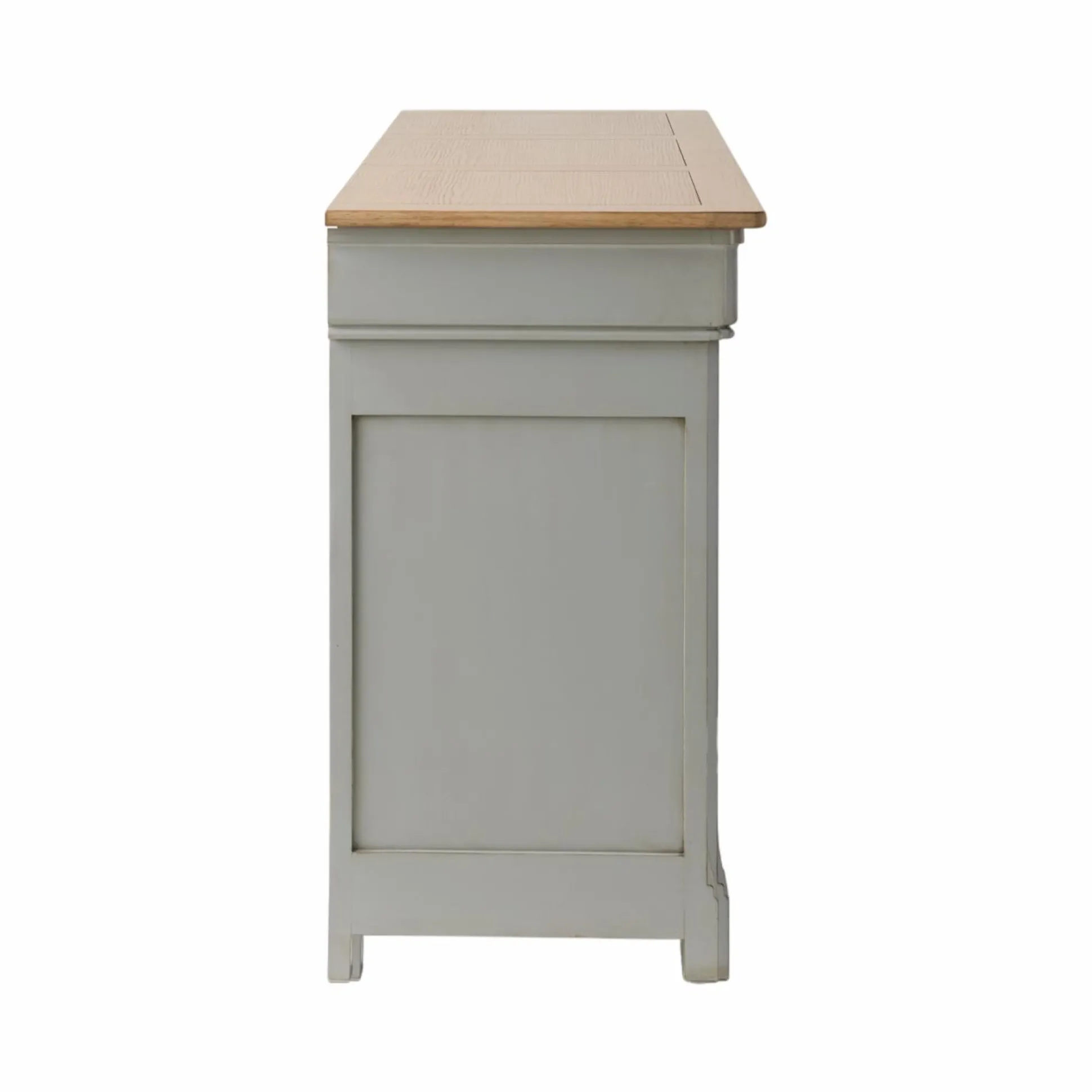 Sa silhouette intemporelle est soulignée par des moulures en façade, véritables signatures d’un style classique assumé. Sa finition antiquaire, appliquée à la main, révèle des marques d’usure volontairement visibles, offrant à chaque pièce une patine unique, pleine de caractère et d’authenticité.