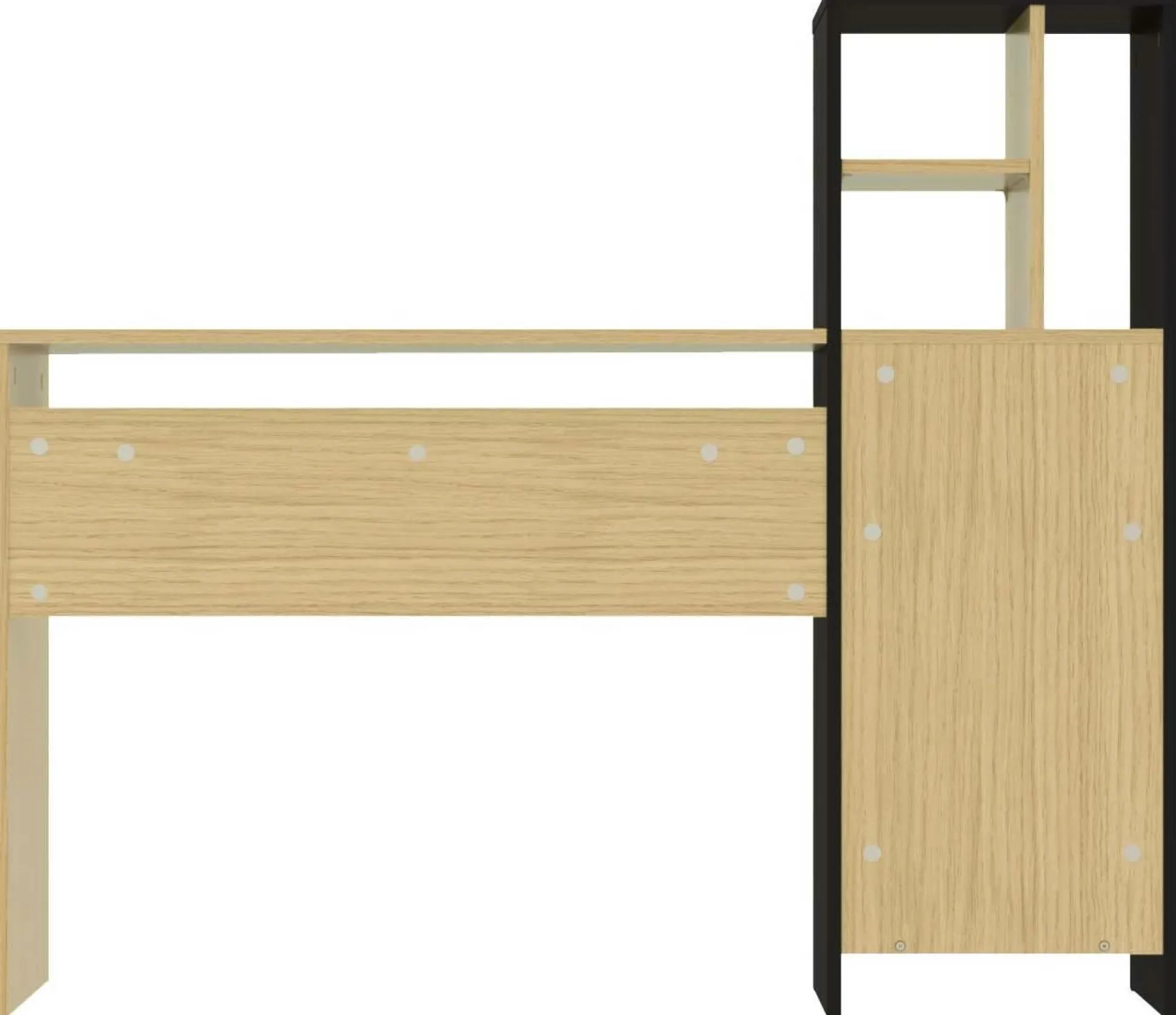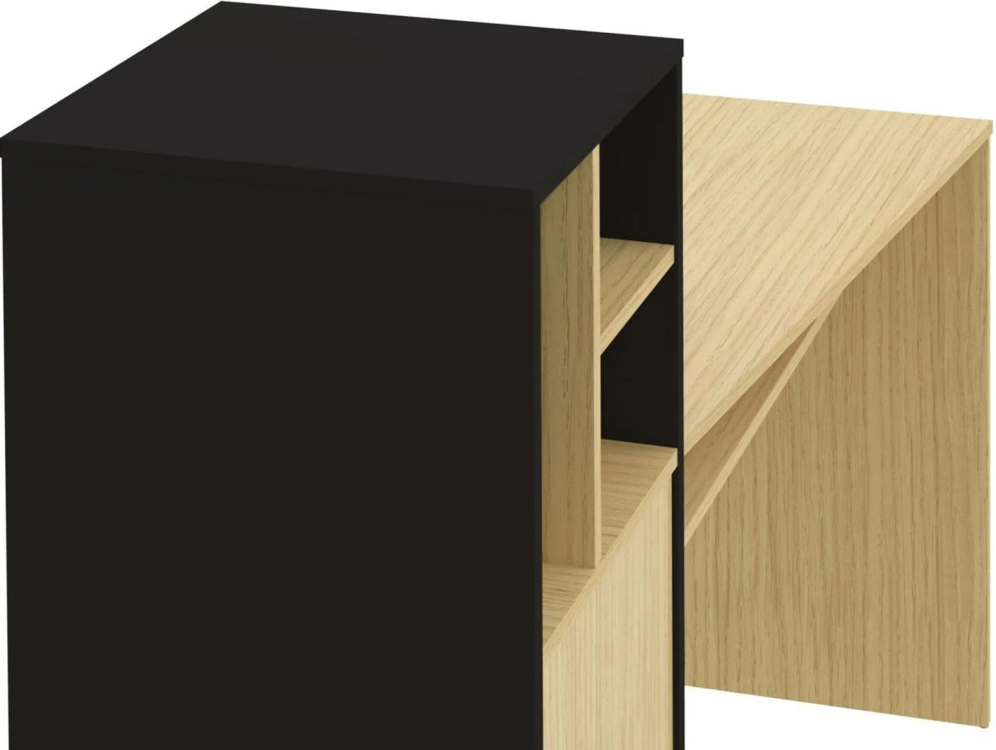 Il dispose d’une niche horizontale sous le plateau mais aussi de rangements ouverts et fermés sur le côté : 3 niches ouvertes en hauteur et une porte renfermant 2 larges étagères.