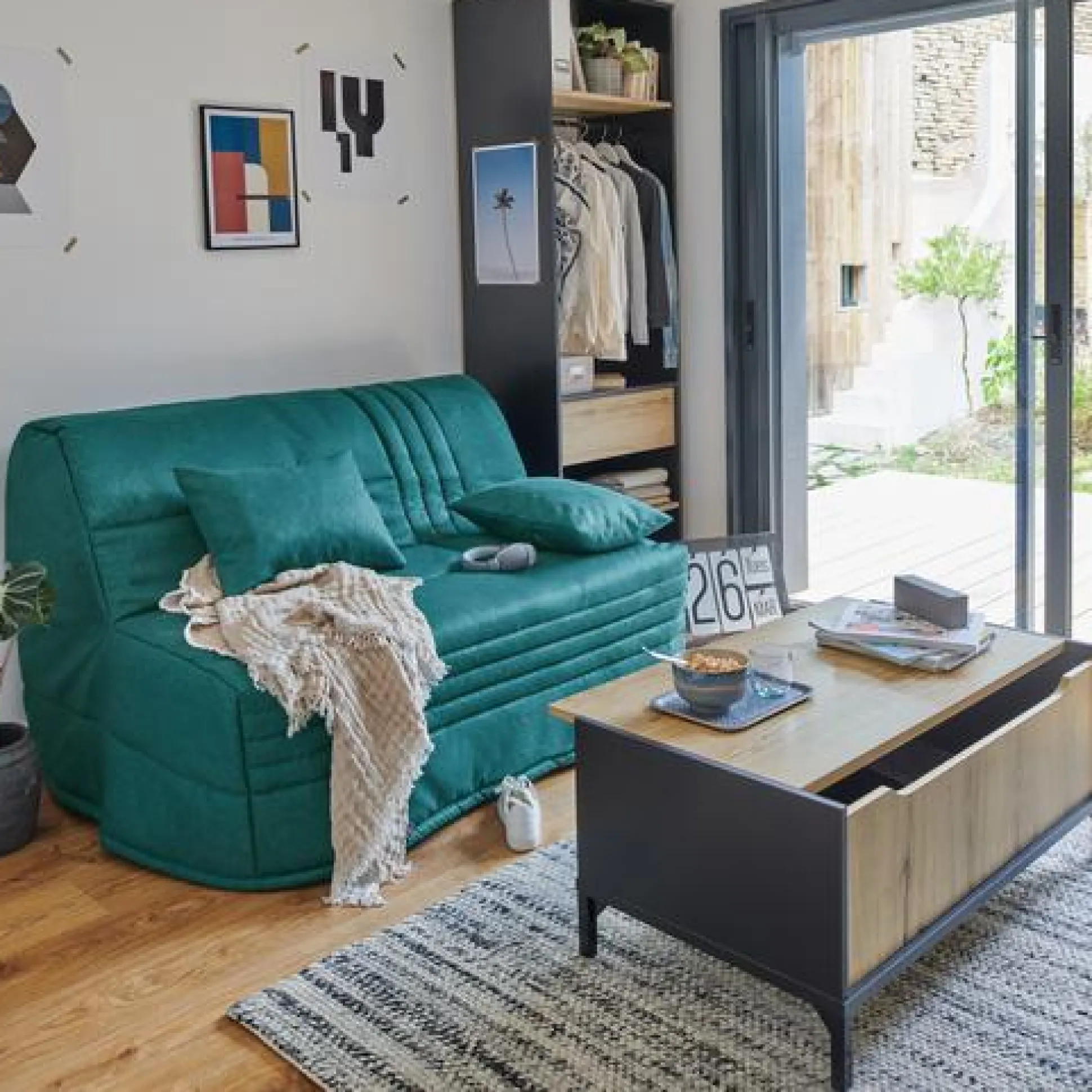 Conçu pour les petits espaces, ce canapé BZ se distingue par son ouverture facile, semblable à un accordéon. Il peut ainsi être adossé au mur pour maximiser l’espace de votre pièce.