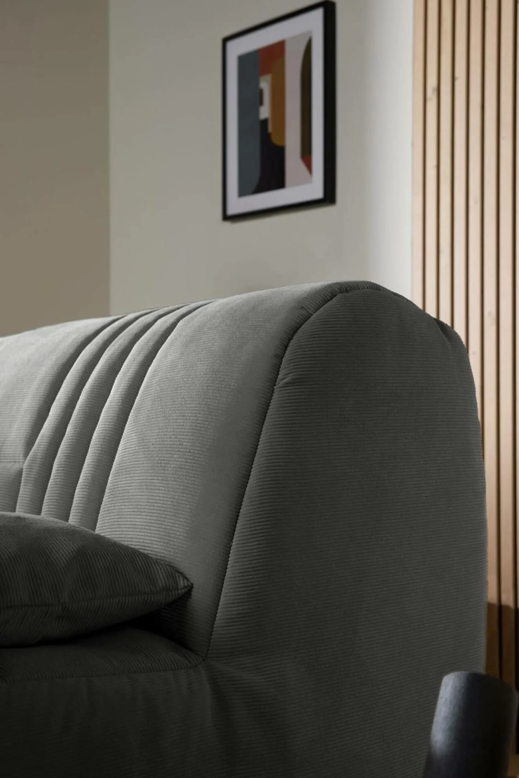 Le velours côtelé offre une texture agréable et raffinée au canapé Gaélia.