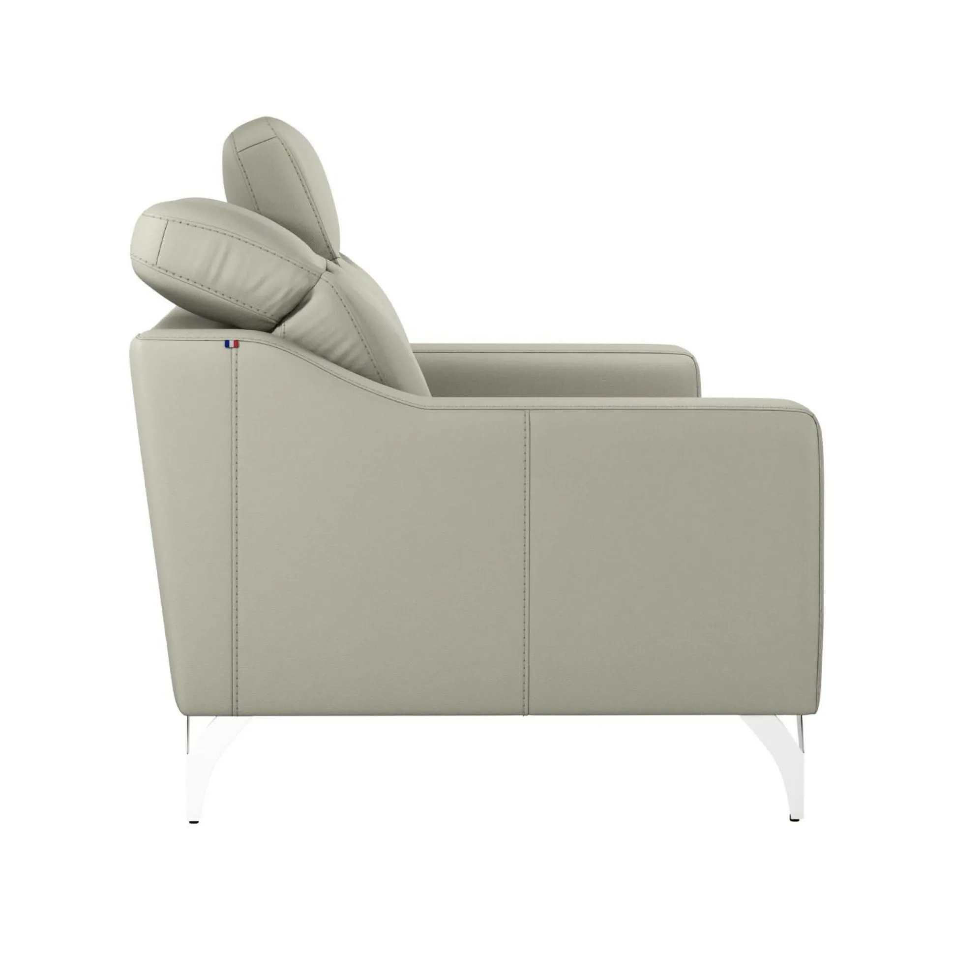 Le canapé cuir avec têtières relevables offre un style contemporain et un haut confort d’assise.