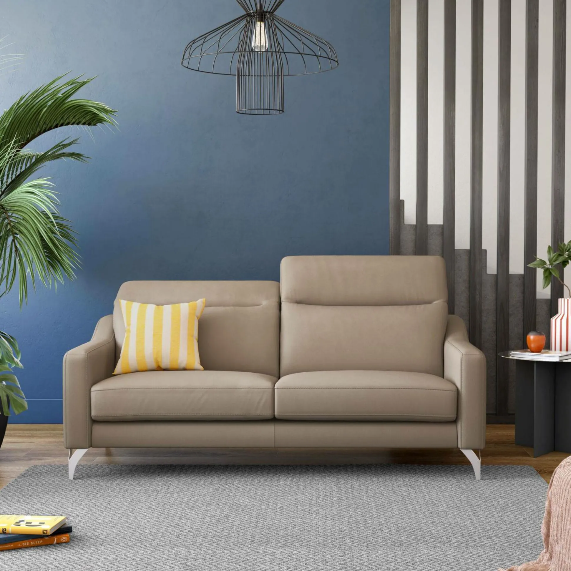 Ses accoudoirs hauts et fins, ainsi que ses pieds hauts ajoutent une touche d’élégance tout en étant peu encombrants.