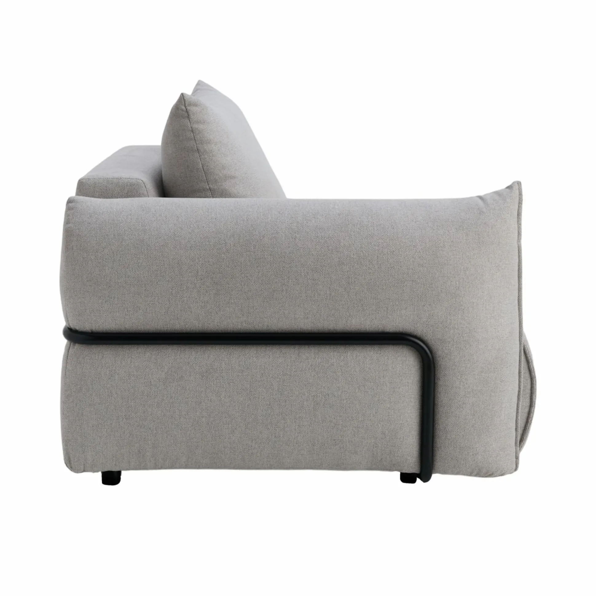 L’élément déco de cette collection : les accoudoirs sont rehaussés d’un support métal. (Les accoudoirs sont disponibles sur les éléments : méridienne et chauffeuse avec accoudoirs)