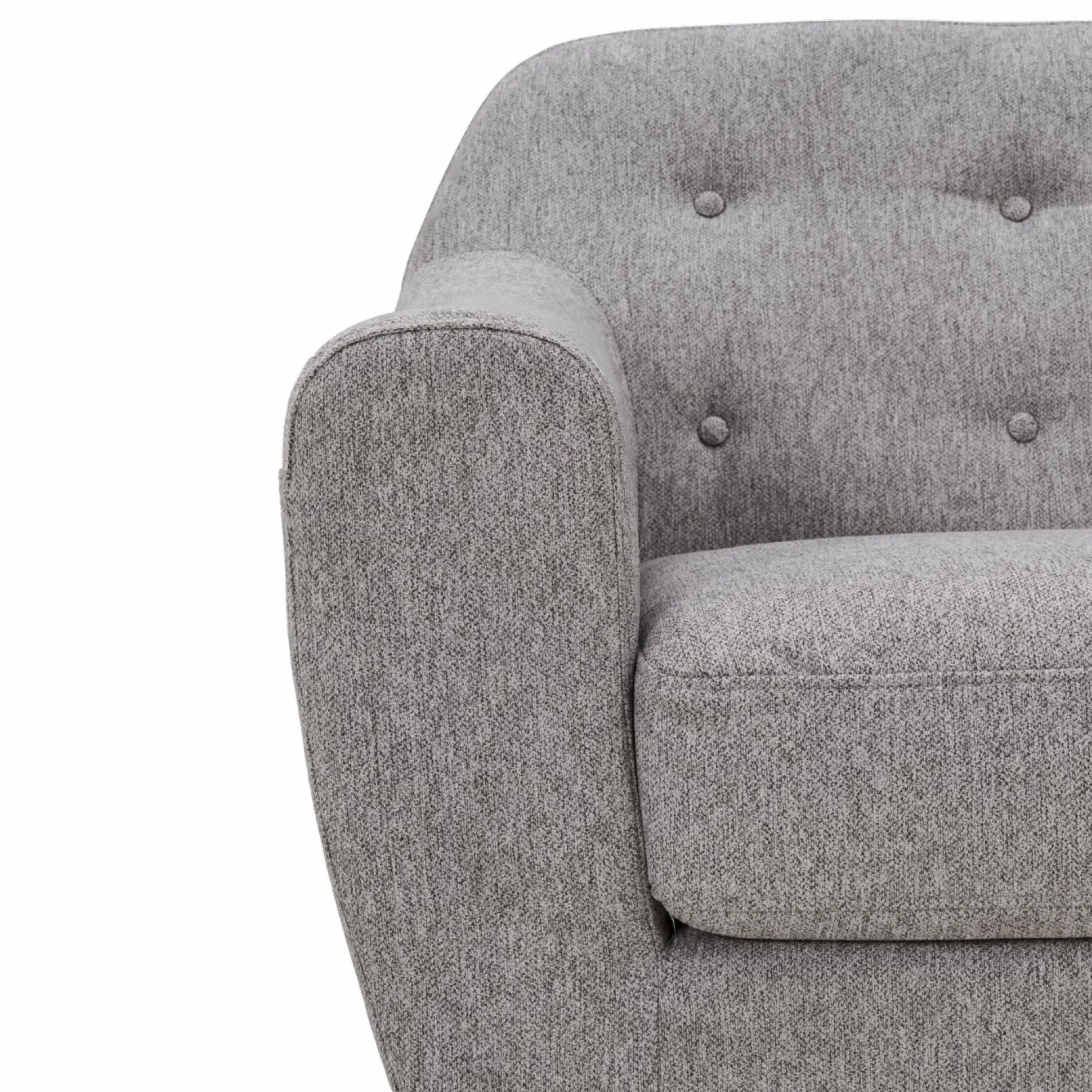 Le canapé Agathe se distingue par son tissu chiné, qui non seulement ajoute une texture visuelle intéressante, mais aussi un aspect accueillant.