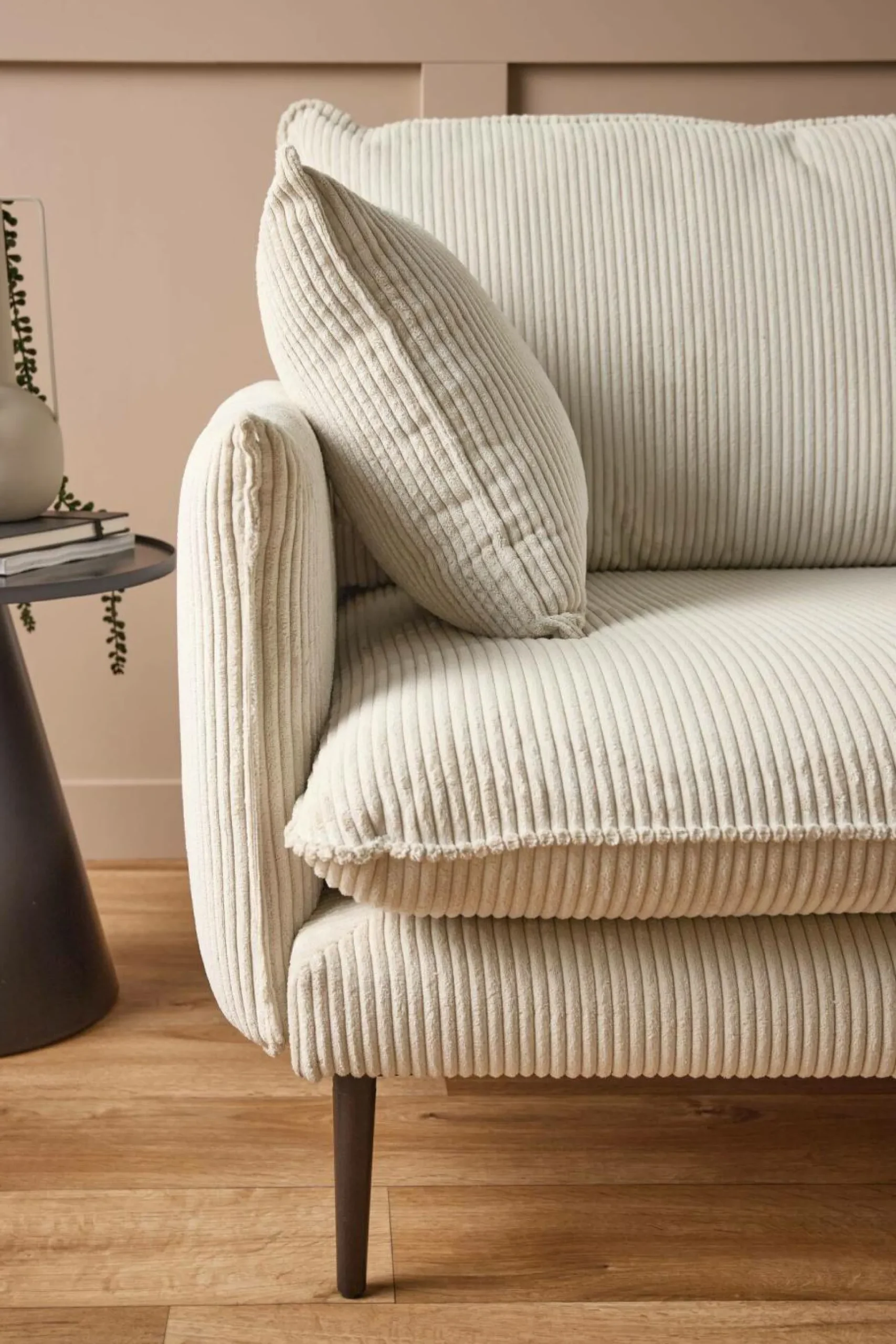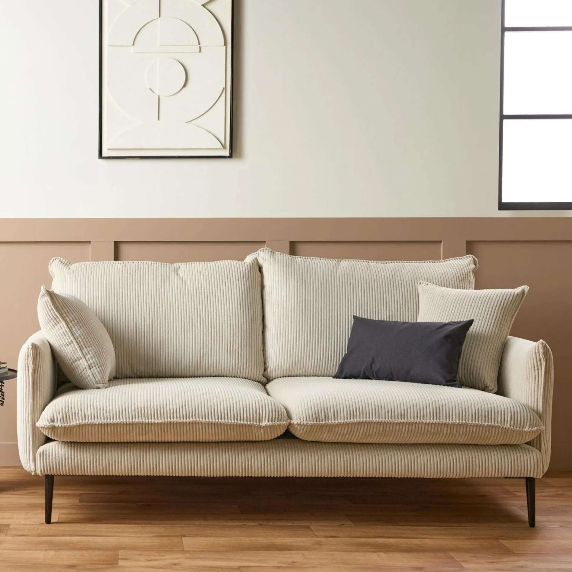 Revêtu d’un tissu en velours côtelé, le canapé Oréa apporte une touche esthétique et raffinée à votre salon.
