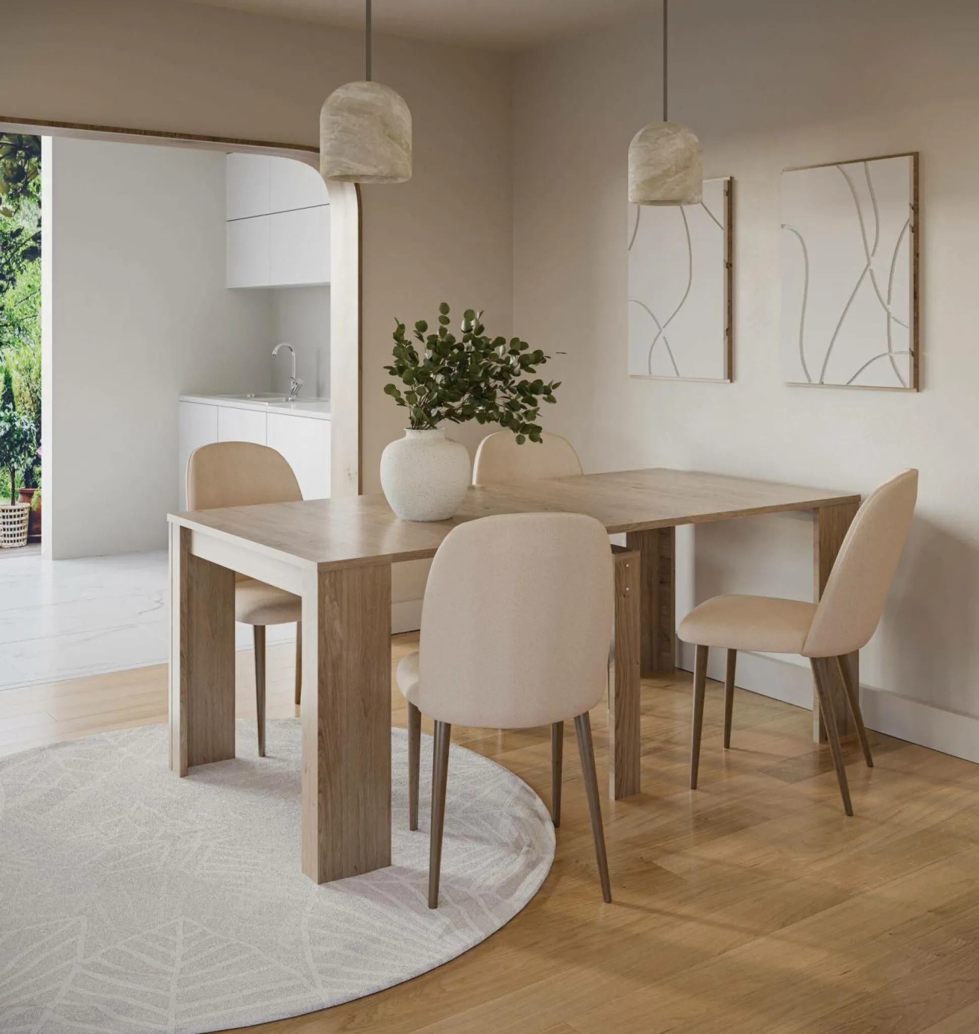 Parfaite pour les petits espaces, cette console à l’allure moderne se déploie facilement grâce à ses allonges, permettant d’accueillir jusqu’à 6 convives en un clin d’œil.