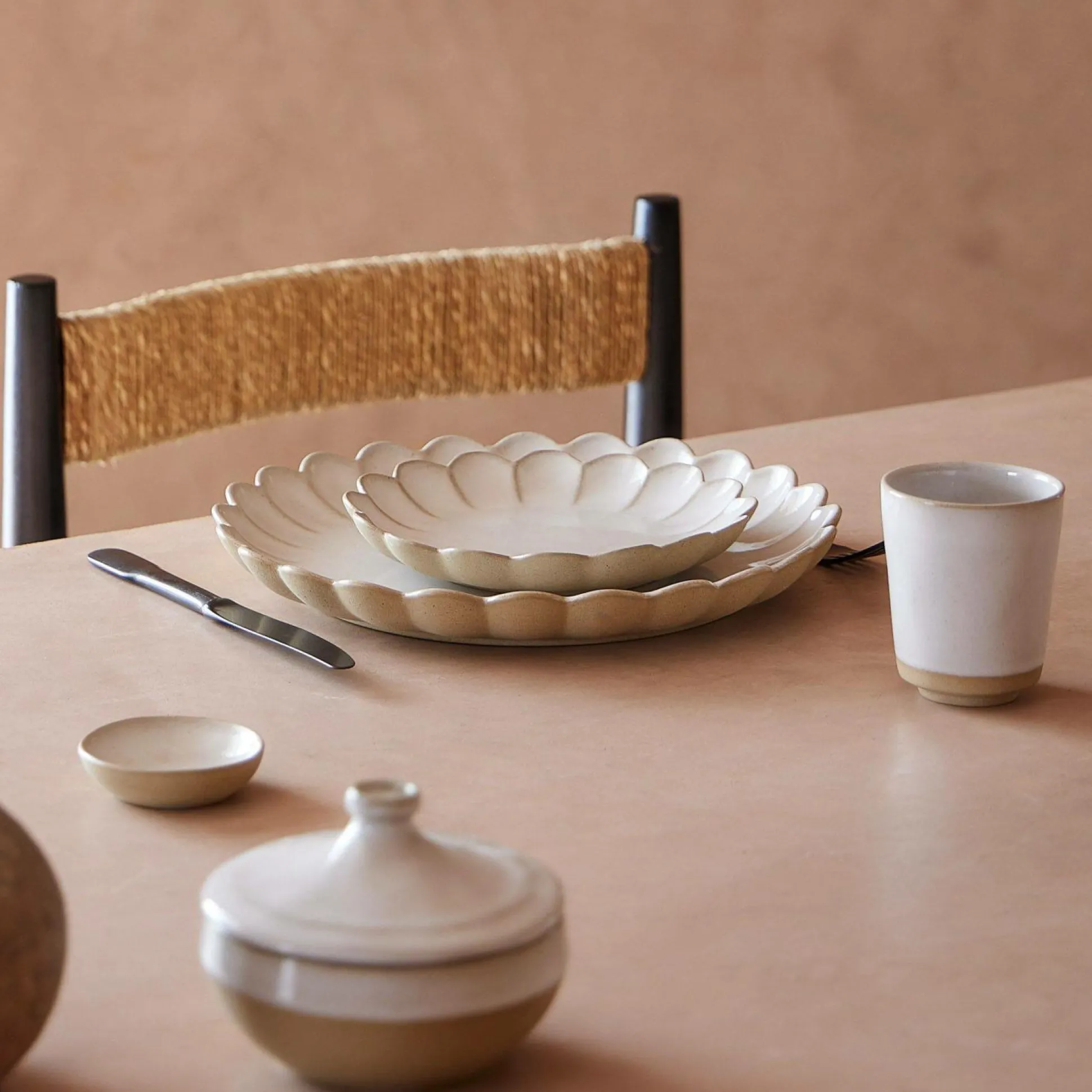 Sa silhouette florale en fait une pièce polyvalente : elle s’utilise aussi bien comme assiette à part entière que comme assiette de décoration.