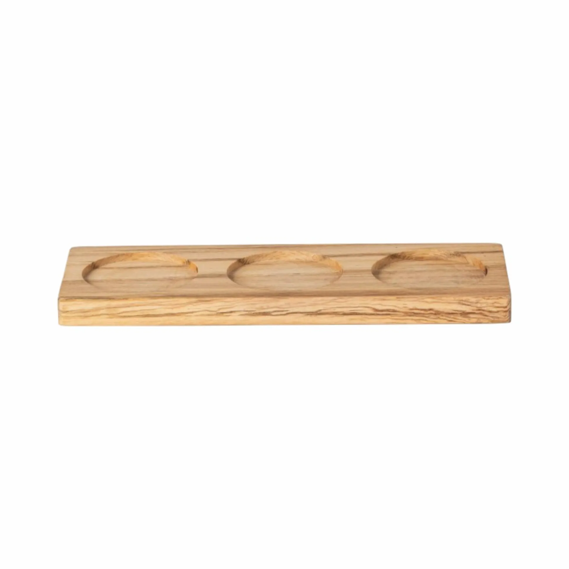 Ce plateau en chêne à trois sections a été imaginé pour accueillir parfaitement les ramequins Aparte et mettre en valeur vos préparations avec élégance.