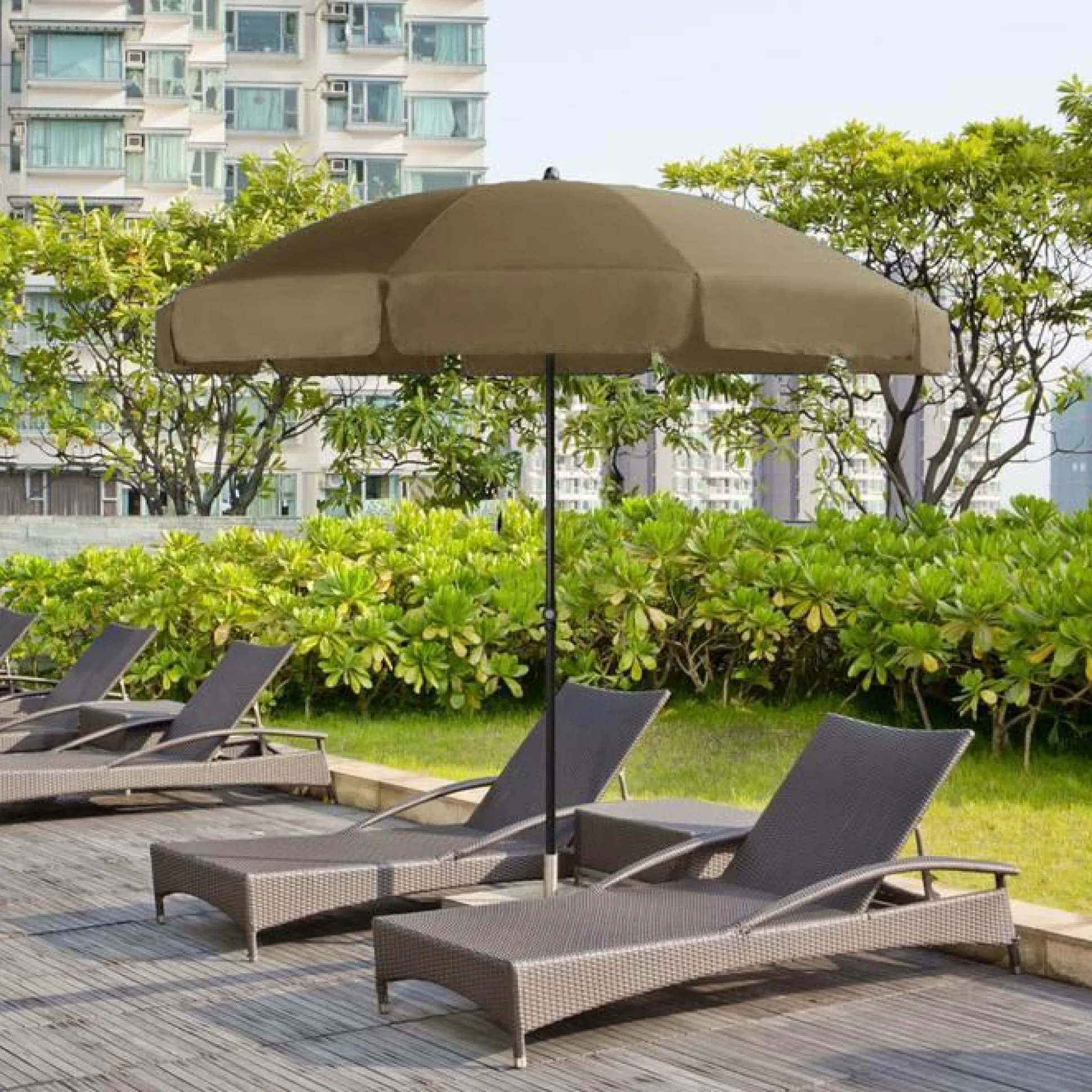 Ce parasol est modulable avec son tube acier en deux parties qui vous permet d’ajuster la hauteur. Sa poignée en caoutchouc permet une fixation et un réglage de la hauteur facilité. Il possède également une fonction inclinable et sera donc parfait pour être réglé en fonction de l’orientation du soleil.