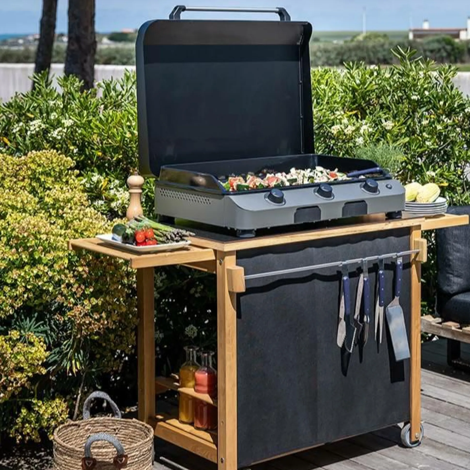 Découvrez la Desserte pour Plancha Emile en Bois de chez ENO et profitez d’un meuble pratique pour vos repas en extérieur.