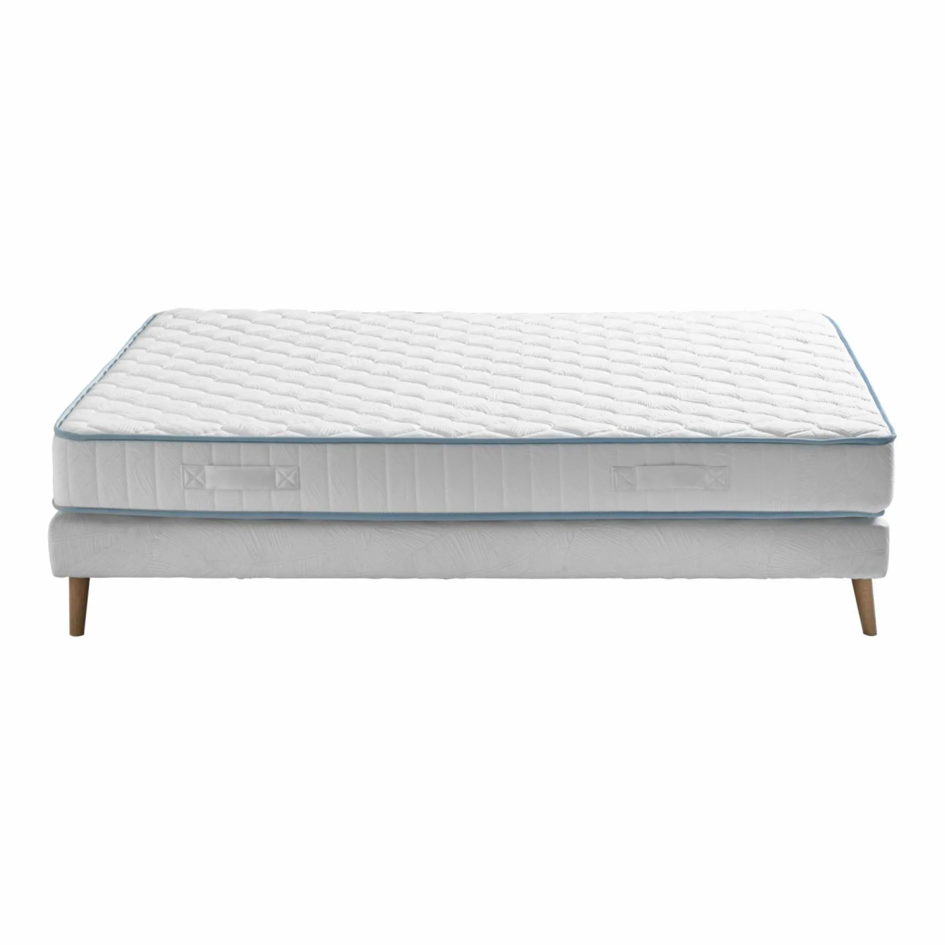 Le sommier quant à lui, vous permettra de raffermir le confort de votre matelas. Grâce à son jeu de pieds fuseaux disponibles en 6 finitions déco, vous pourrez apporter à votre chambre une touche de modernité et un style « scandinave » très appréciable.