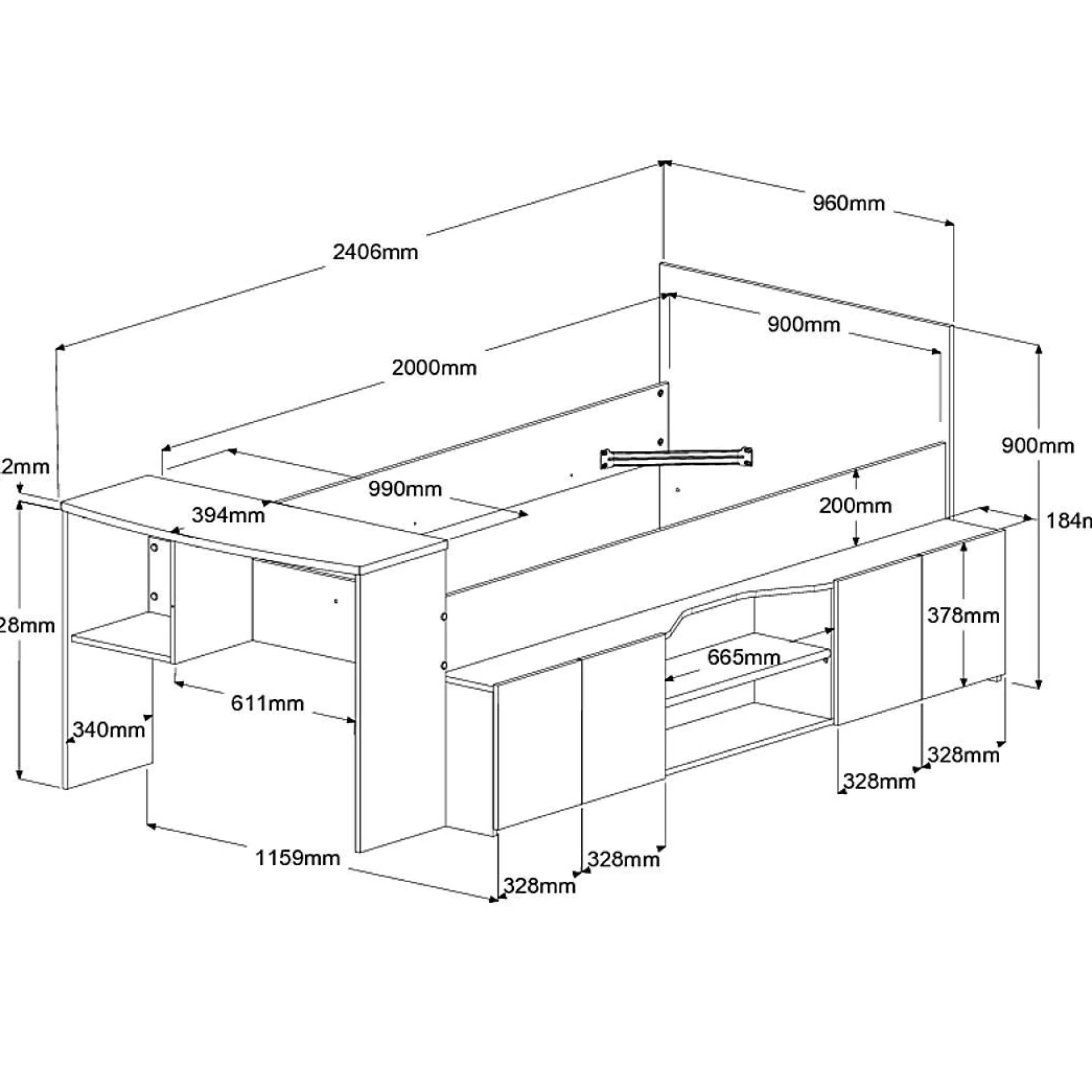 Un bureau très pratique avec sa niche est intégré au pied du lit, offrant un espace dédié aux plus beaux apprentissages de votre enfant. En utilisant les rangements latéraux pour disposer les jouets ou les livres, ce lit contribue à un aménagement optimisé de la chambre.