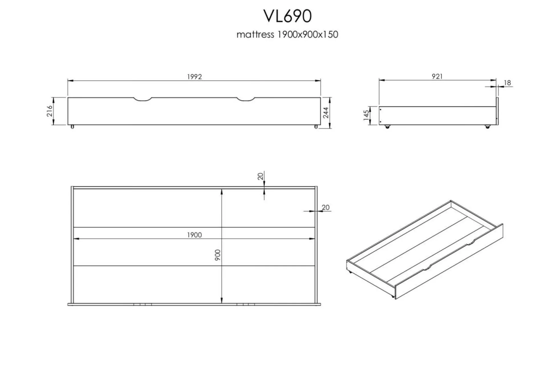 Vous allez être fou du lit gigogne Tom ! L’indispensable des petits espaces, ce lit gigogne combine un 2ème couchage, parfait pour accueillir de la famille ou des amis, avec de grands tiroirs de rangement !