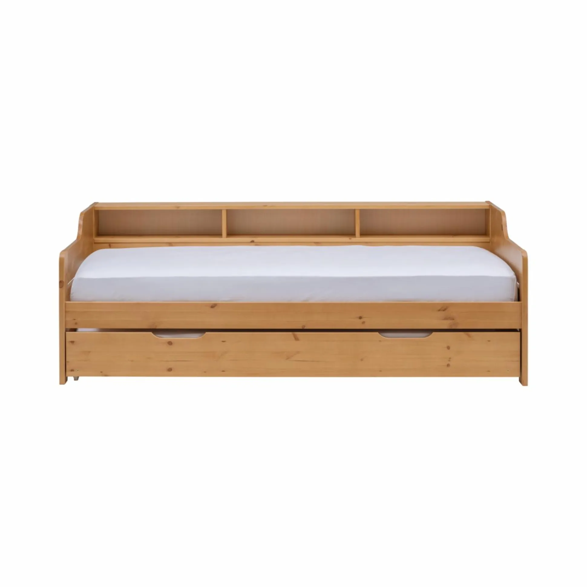 Le lit Timéo, au style nature, offre une ambiance douce et chaleureuse à votre intérieur. Il conviendra aussi bien à une chambre d’enfant qu’à une chambre d’ami. Fonctionnel, il offre un couchage supplémentaire avec son tiroir-lit qui peut également servir de tiroir de rangement.