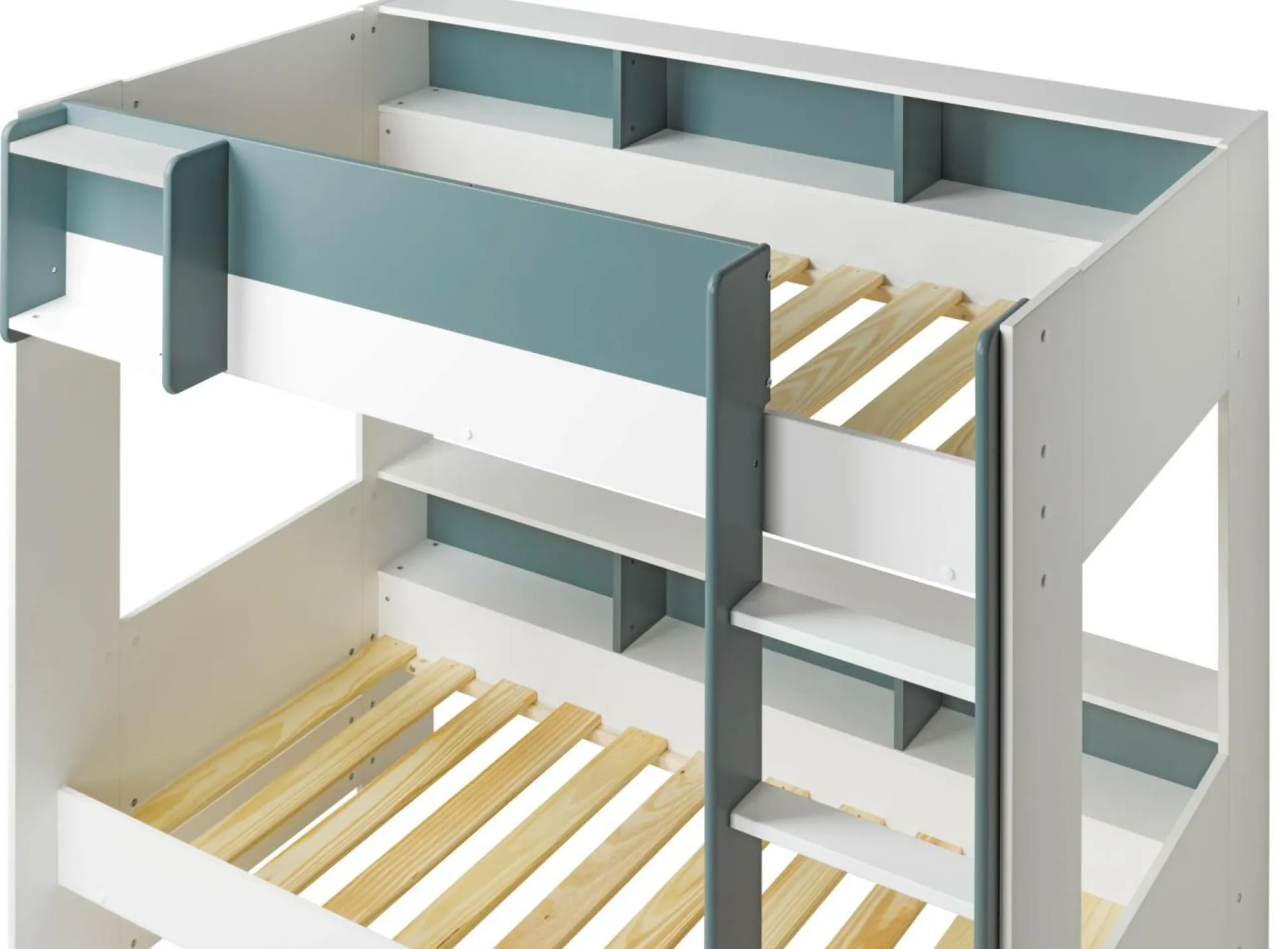 Ce modèle robuste est conçu pour accueillir deux couchages et optimiser l’espace de la chambre tout en accordant à chaque enfant son intimité. Ses contours surélevés et son échelle à marches plates assurent à vos enfants une nuit en toute sécurité.Chaque lit est équipé de 3 rangements et ainsi, chacun pourra créer son univers, son cocon, en y rangeant ses affaires. Petit plus, le lit du haut est équipé d’une étagère supplémentaire. Choisir les lits superposés Séraphin, c’est vous garantir un meuble durable et robuste. La sobriété des couleurs se mariera parfaitement à votre décoration et amènera un côté moderne à votre pièce. Avec les lits superposés Séraphin, optez pour le design sans transiger sur la qualité.