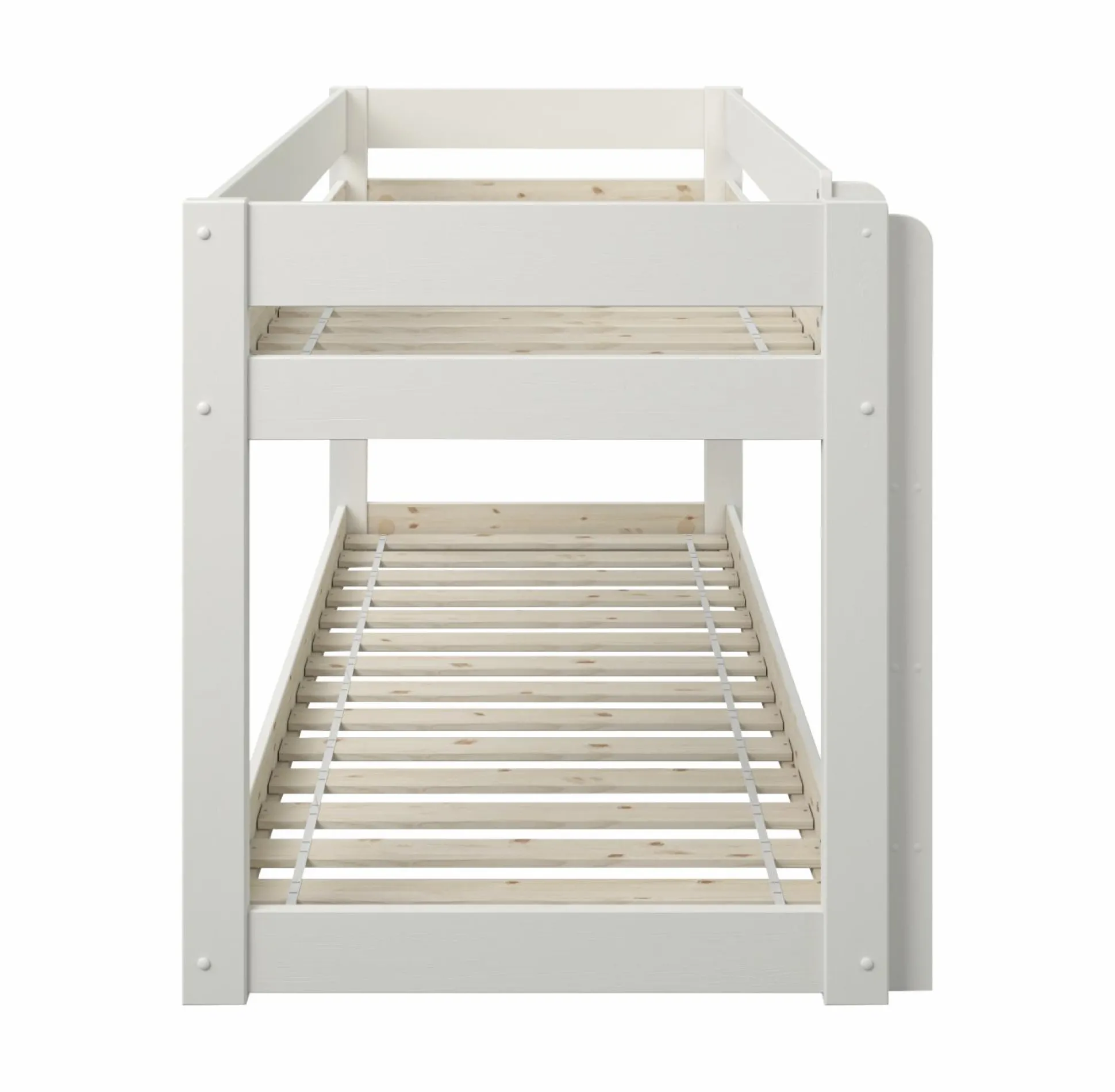 Le lit inférieur est positionné au plus près du sol, sans barrières de protection, afin que l’enfant soit encouragé à se sentir libre de monter ou de descendre de son lit. Grâce à cette liberté, l’enfant peut sortir du lit sans la nécessité de l’aide d’un adulte.