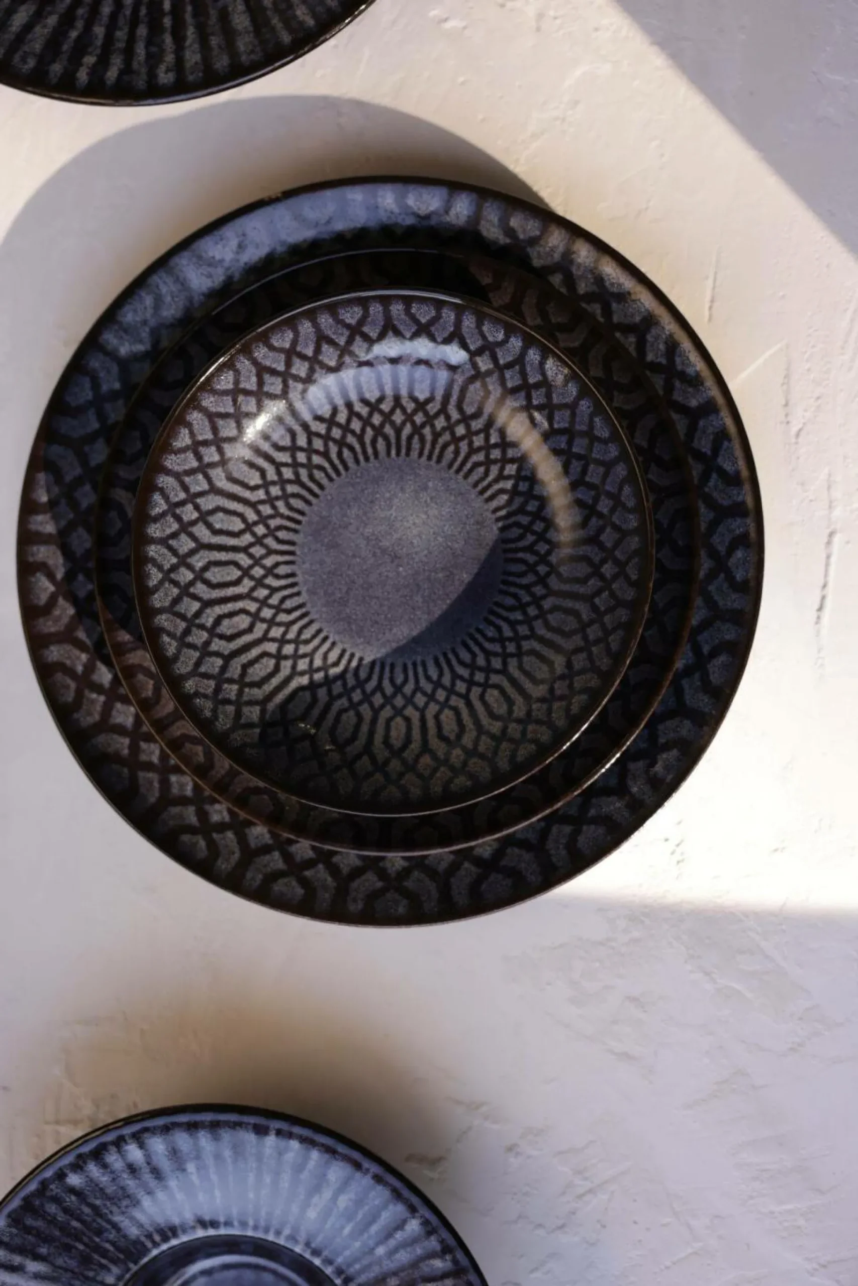 Donnez du caractère à votre vaisselle avec le lot de 6 assiettes plates Croisé Anadia au motif croisé élégant.