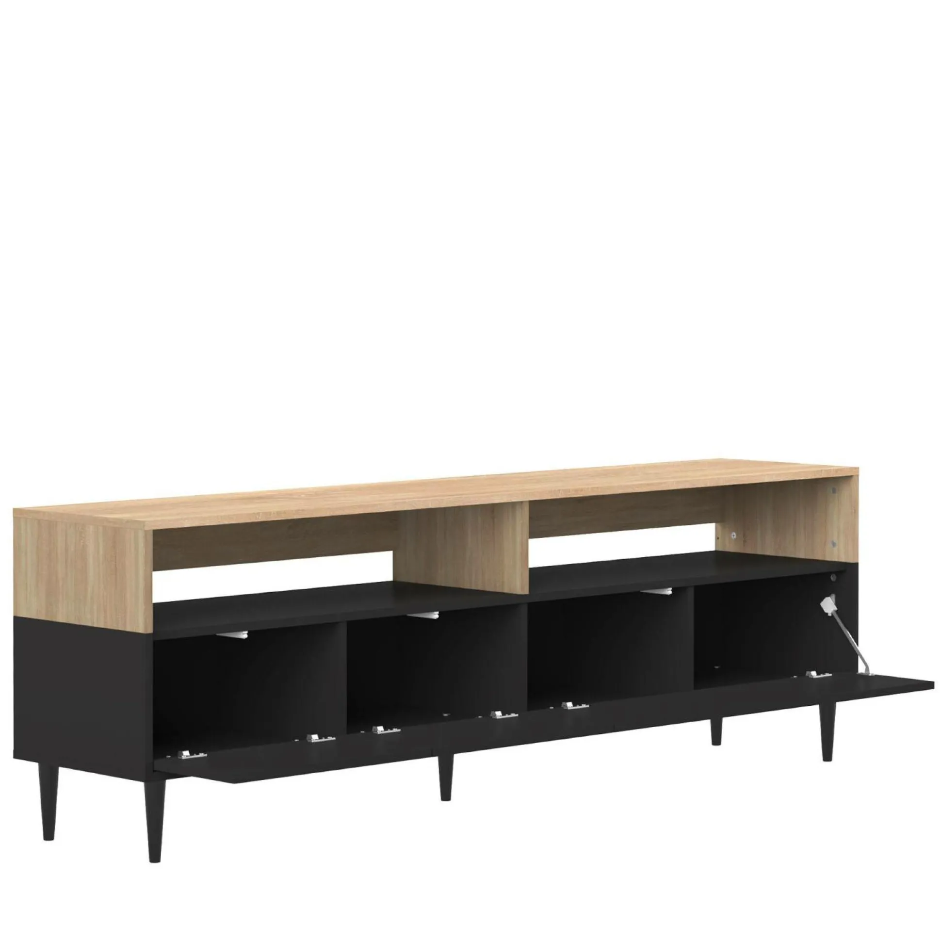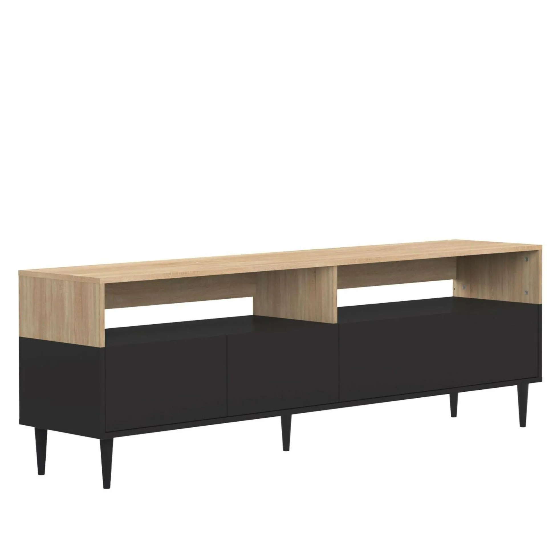 Sur ses 5 pieds fuselés en hêtre massif et avec son décor bi-ton, le meuble TV Horizon apporte du cachet et de la clarté dans votre salon.