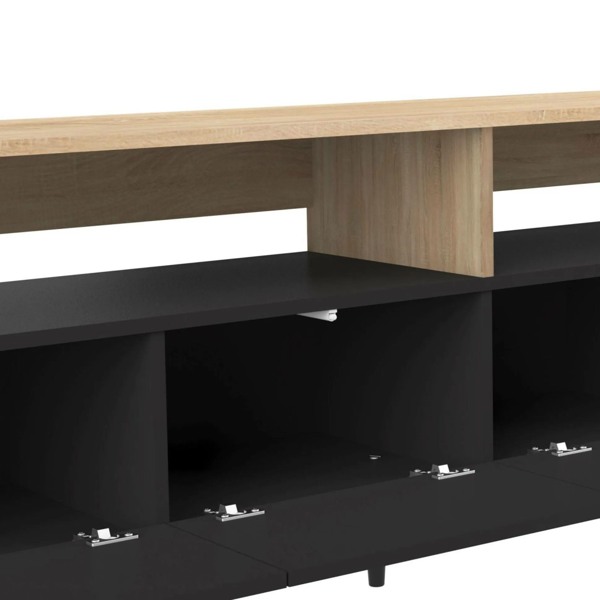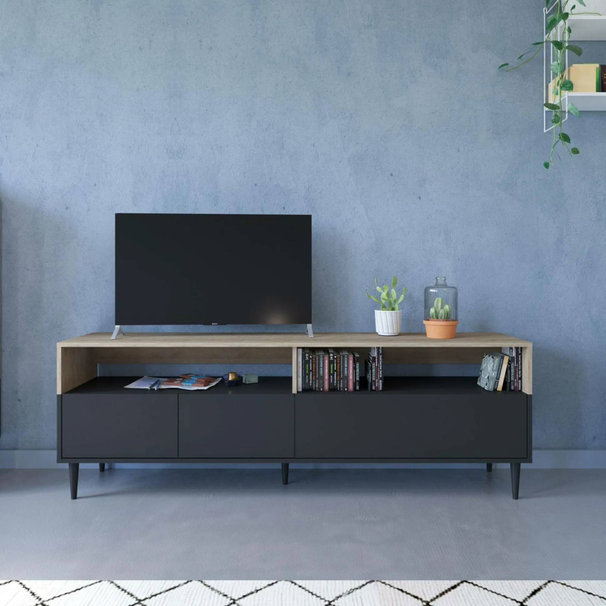 Épuré et chic, il sera aussi très pratique grâce à ses nombreux et grands rangements : ses 2 grands niches ouvertes seront idéales pour accueillir votre matériel multimédia, tandis que son grand rangement fermé cache 4 vastes niches pour y stocker CDs, DvDs, album photos, matériel divers…