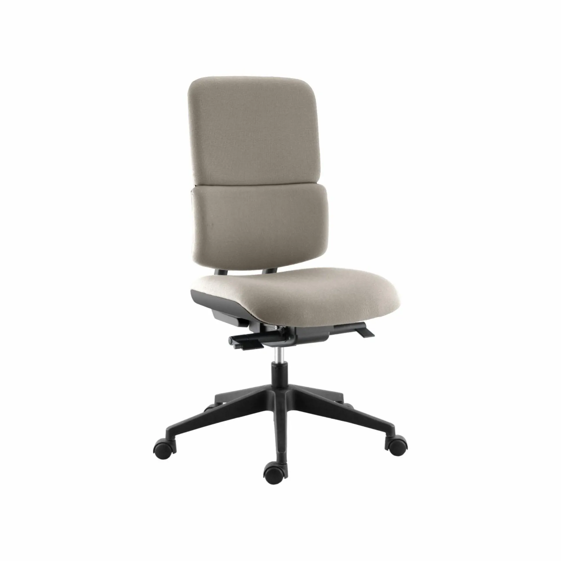 Son dossier tapissé, assure une excellente respirabilité et un soutien dorsal précis, sans encombrer l’espace latéralement. Le mécanisme synchronisé permet à l’assise et au dossier de se mouvoir ensemble, tout en offrant des réglages de tension, pour s’adapter à chaque morphologie et préserver le confort sur de longues heures. L’assise, avec sa mousse dense, garantit fermeté et durabilité, tandis que la base étoilée à 5 branches assure une stabilité exemplaire.